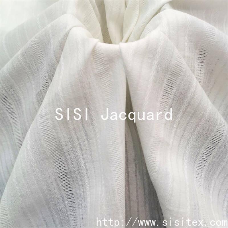 This all-cotton hollowed-out bubble strip jacquard fabric is woven from high-quality cotton yarn, combining hollowed-out jacquard and bubble strip textures to present a unique three-dimensional effect and artistic beauty. The fabric is light and breathable, with a soft and comfortable touch. It is very suitable for making summer women's clothing or home decorations. Whether it's a romantic dress or exquisite home textiles, they can add a touch of elegance and personality to your outfit or living space. Shaoxing Sisi Textile Products Co., Ltd. meticulously creates a perfect blend of natural comfort and fashionable design.
