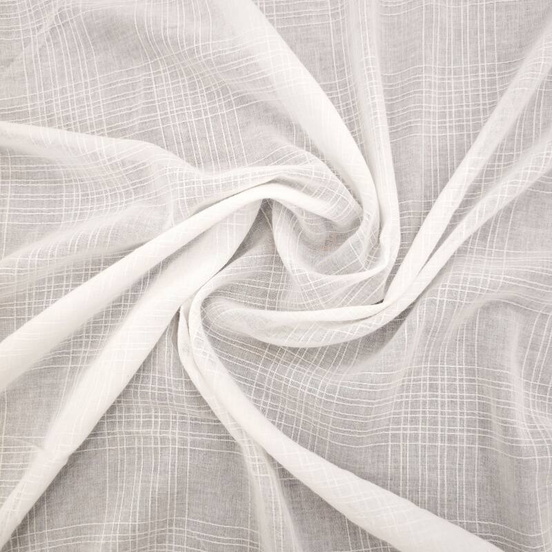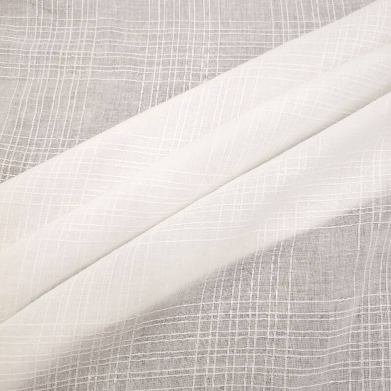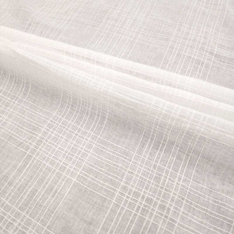Based on the intangible cultural heritage of the gauze weaving technique, it uses digital jacquard technology to present precise linear textures. The fabric is woven from 60-count combed cotton yarn, with 10 jacquard lines of varying widths every 10cm, as rhythmic as the brushstrokes in an ink-wash painting. The longitudinal breathable channels formed by the gauze structure keep the fabric weight at around 100g/m², maintaining both stiffness and ensuring wearing comfort. It is particularly suitable for making modern clothing with a Zen touch or for creating minimalist style space soft furnishings.