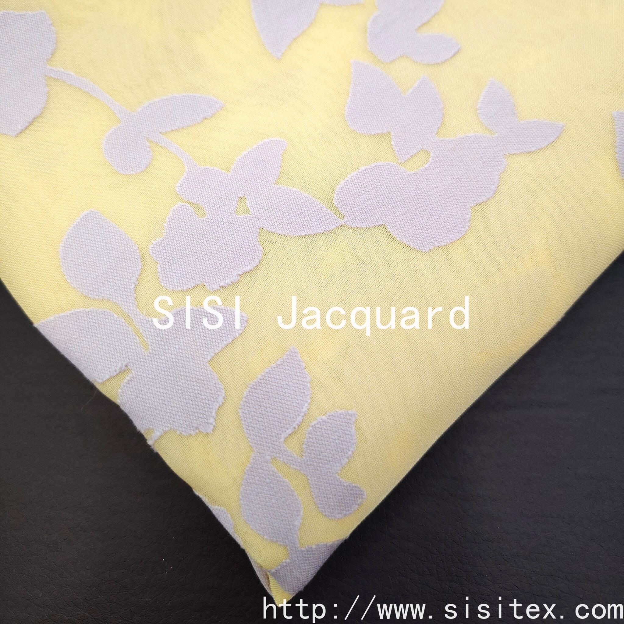 独特烧花工艺:通过精准的烂花技术,蚀去35%的人棉,留下65%的涤纶骨架,形成鲜明、通透的虚实对比图案。