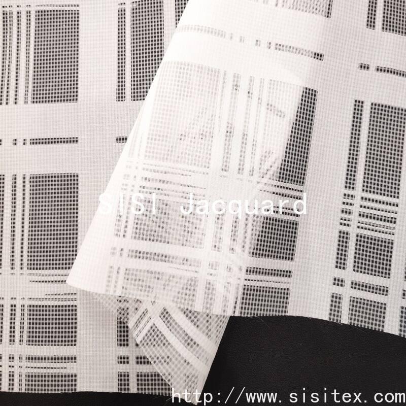 This fabric is a blend of 50% polyester and 50% cotton. It is processed through a jacquard technique to create a clear and three-dimensional geometric check pattern with open spaces. The fabric weighs only 85g per square meter and has a width of 145cm. It is lightweight and soft in texture. The geometric pattern retains the original appearance of the fabric, while the open areas present a transparent texture. Polyester provides shape retention and a crisp feel, while cotton enhances skin comfort and breathability. The overall style combines modern geometric aesthetics with practical functionality, making it suitable for creating light and layered outfits for the spring and summer seasons.