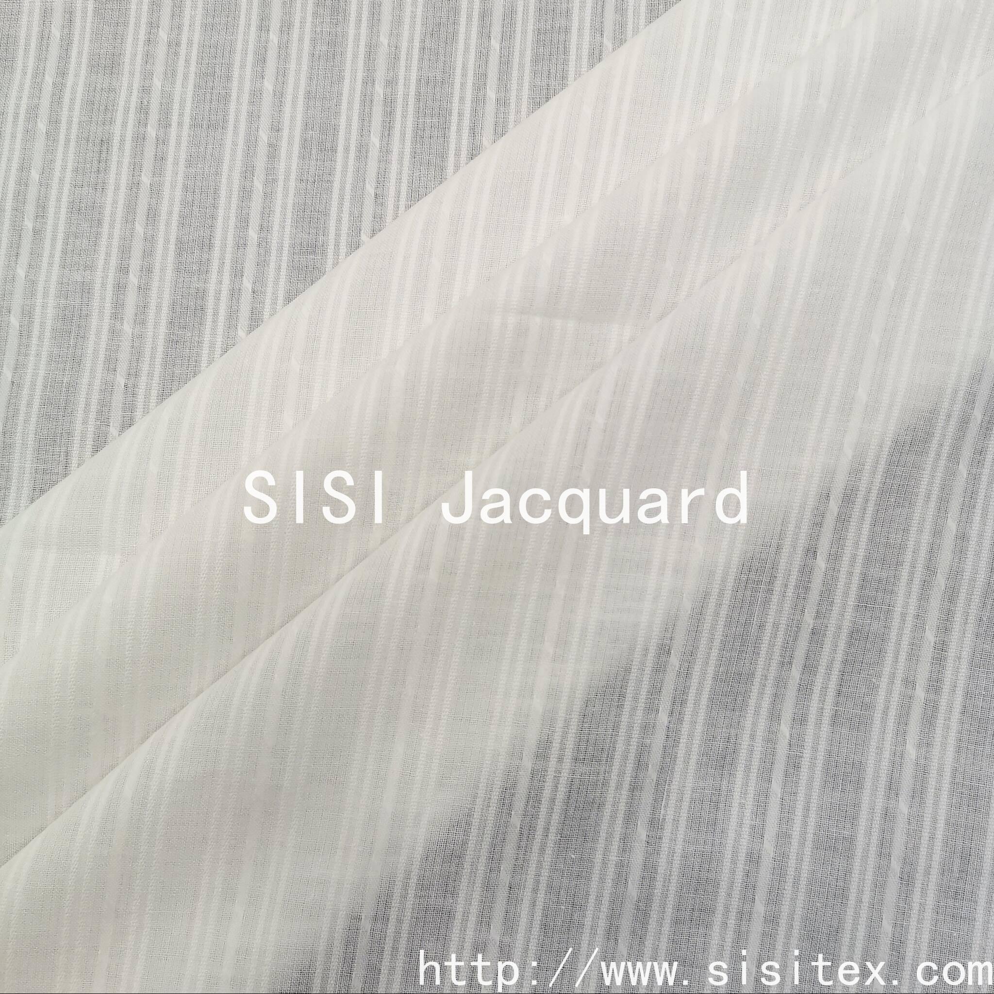 This all-cotton gauze vertical jacquard fabric produced by Shaoxing Sisi Textile Products Co., Ltd. perfectly combines traditional craftsmanship with modern design. Selected from high-quality long-staple cotton as raw material and using patented yarn weaving technology, a unique three-dimensional vertical stripe texture is created. The fabric combines stiffness and softness, with excellent drape, making it an ideal choice for making high-end ready-to-wear garments.