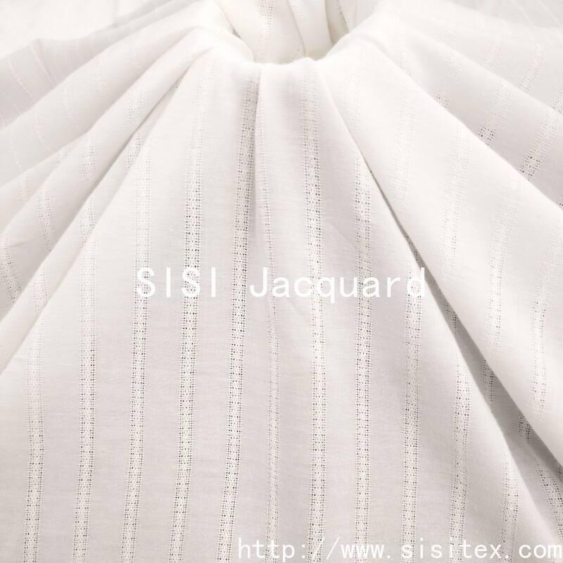 This product is made of SS18530-2 type all-cotton elastic mesh jacquard fabric. Through the jacquard weaving process, regular mesh patterns are formed, with clear holes and clean edges, providing both breathability and decorative appeal. The fabric maintains the softness and skin-friendly properties of all-cotton while incorporating elastic fibers, making the finished garments more form-fitting and less prone to deformation. The texture is dry and crisp, not sticky to the skin, and is particularly suitable for lightweight designs in the spring and summer seasons.