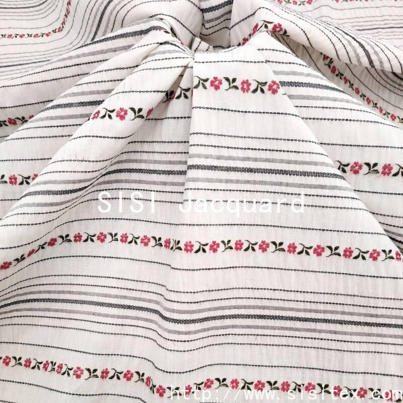 popular elements:Wavy jacquard weave, cotton-polyester blend, dyed fabric technique