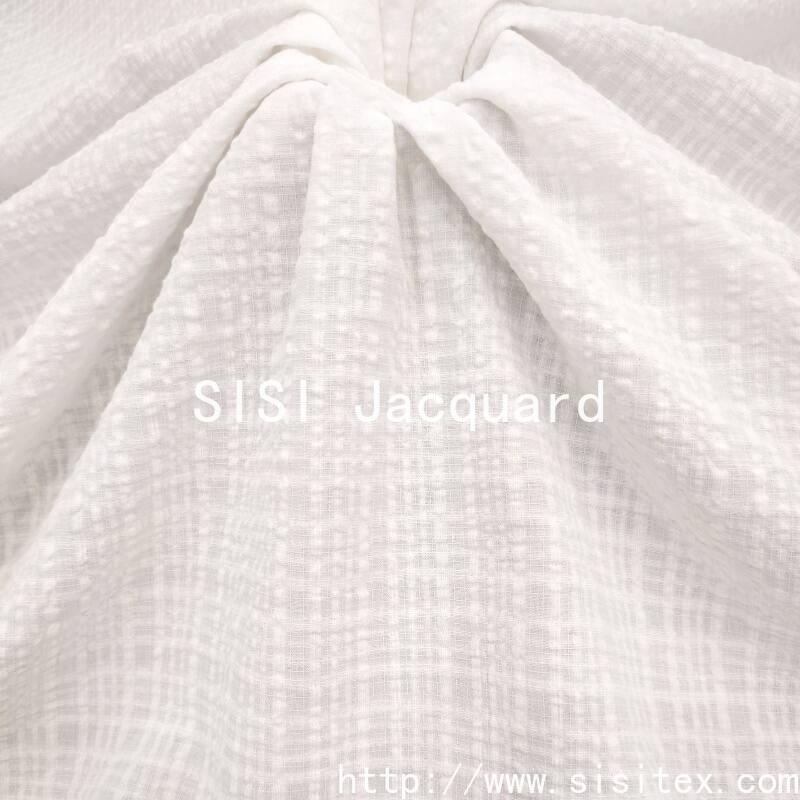 Model Number: SS18890 | Cotton and Polyester Ionic Bubble Weave Plaid Jacquard Fabric