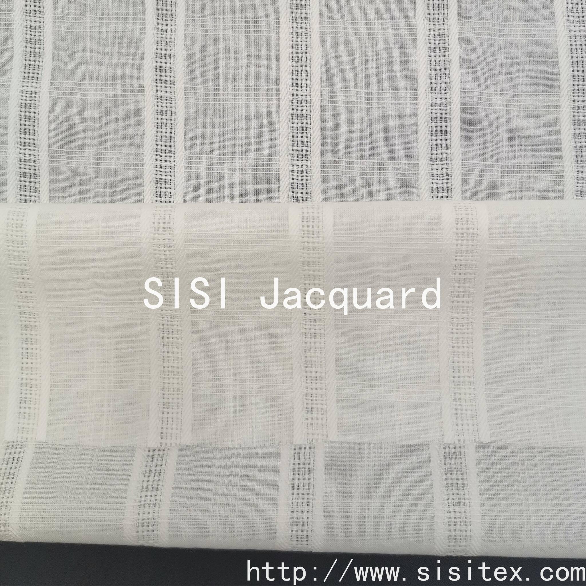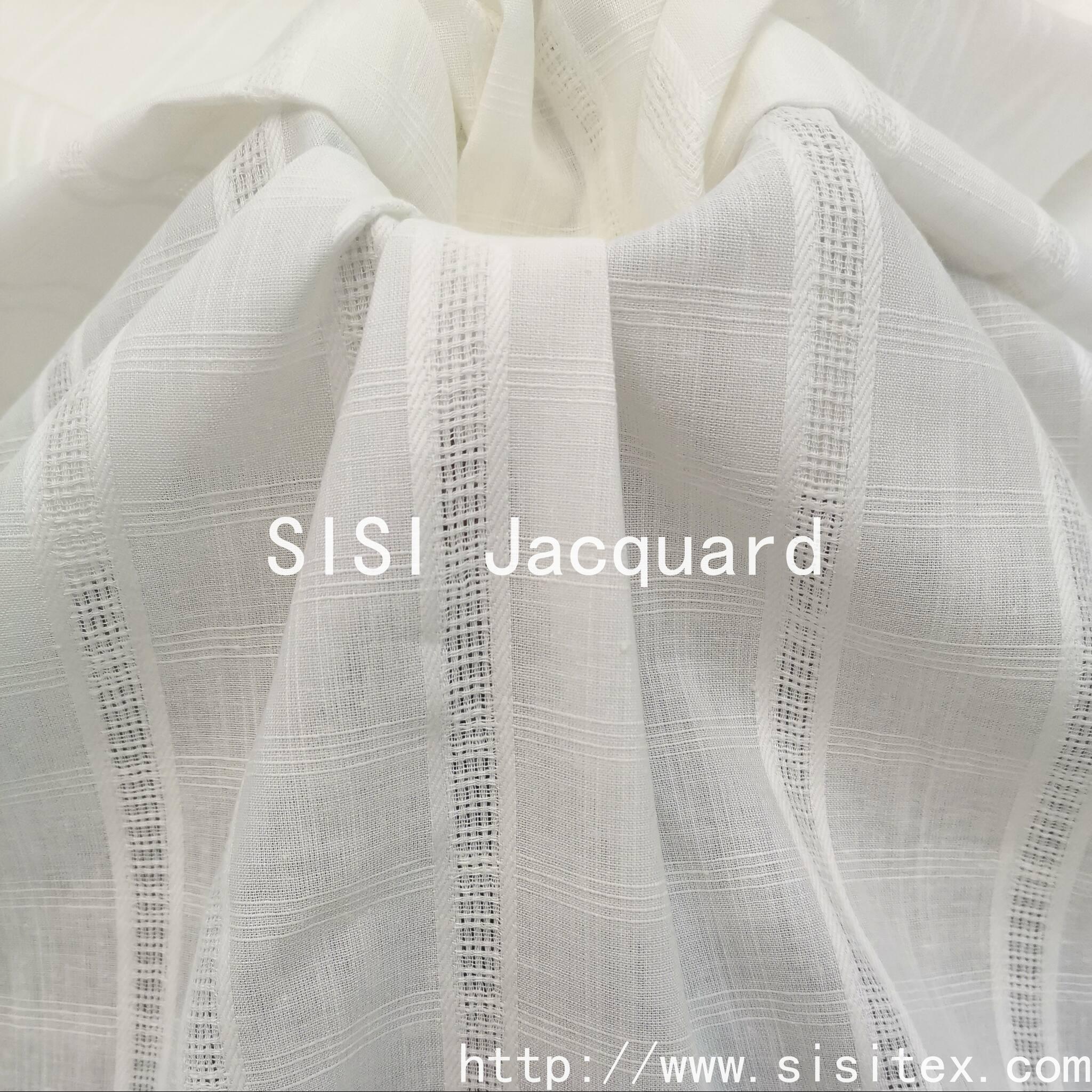 Woven from high-quality cotton yarn, it features a classic geometric jacquard and vertical stripe design to present a three-dimensional texture. Paired with a gauze and hollowed-out technique, it is breathable and not stuffy. The fabric is soft and smooth, suitable for making shirts, trousers and home textile products. High-density weaving ensures durability. The jacquard parts are exquisitely detailed and the style is simple and versatile. Whether it's daily wear or home decoration, it can enhance the sense of quality.