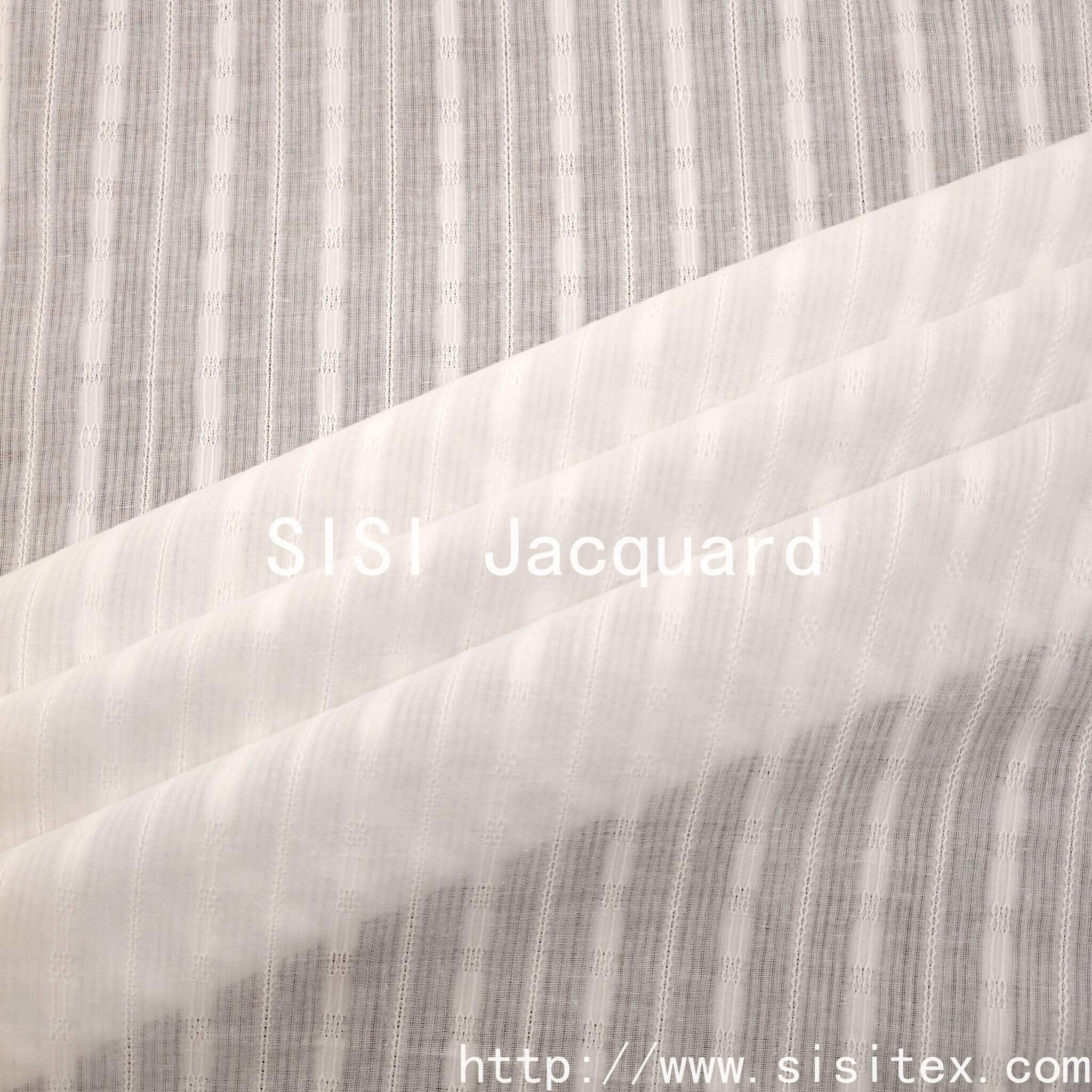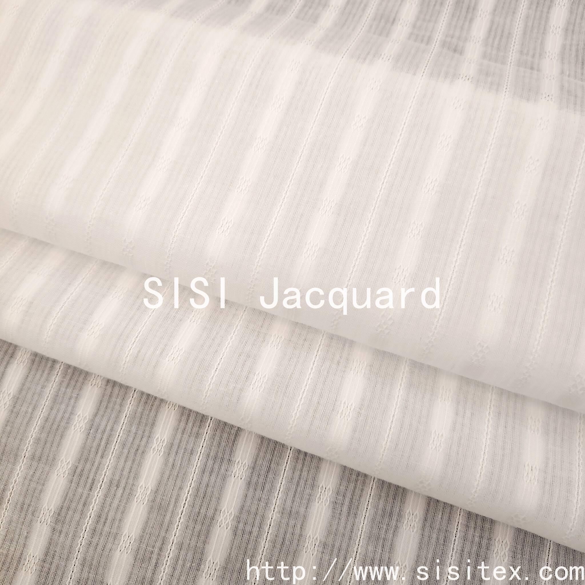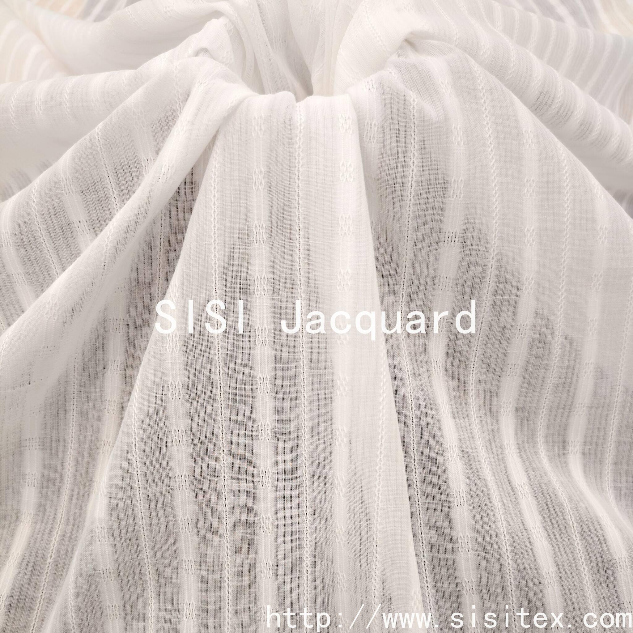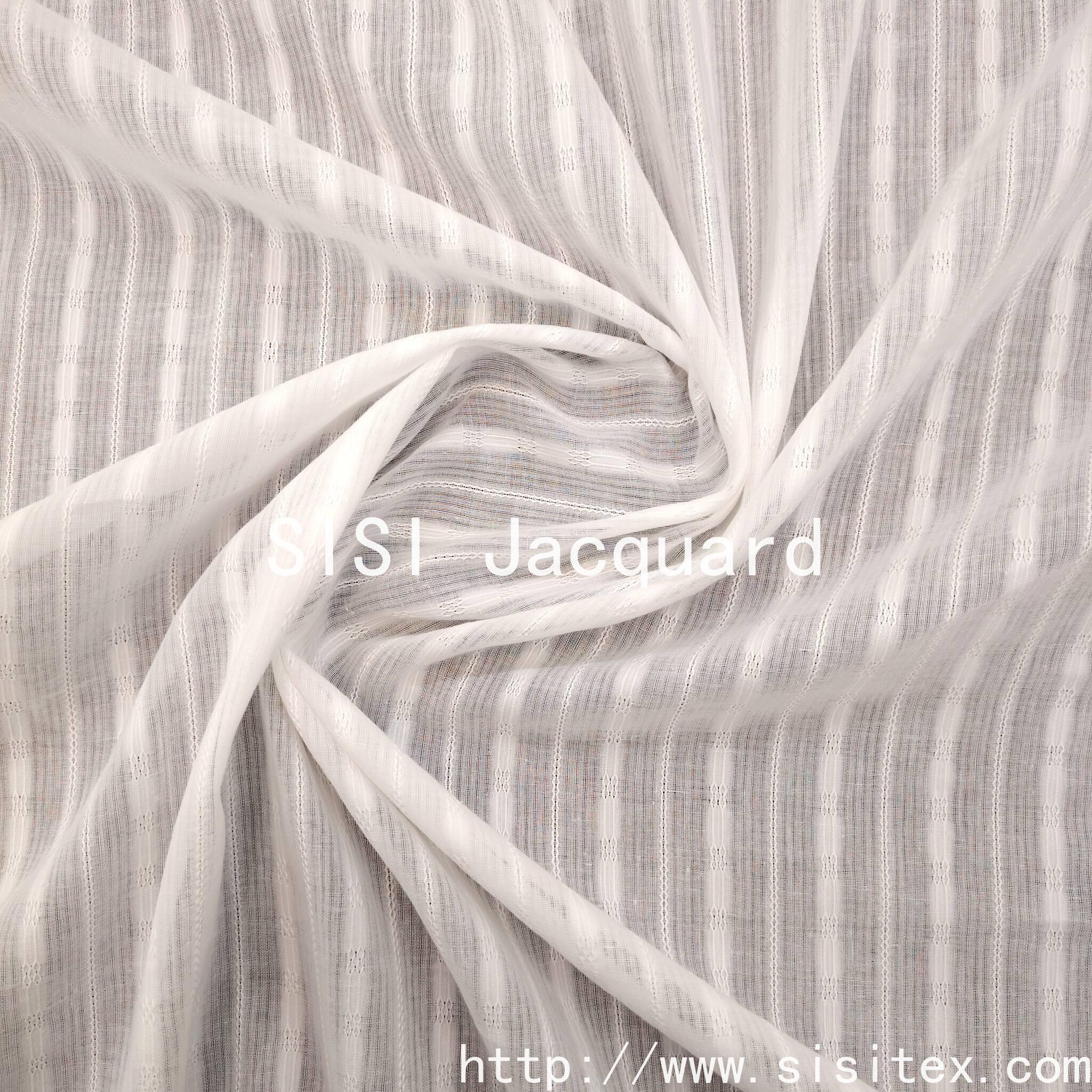 Crafted with meticulous silk jacquard craftsmanship, this product is made of 100% pure cotton and woven using traditional braided techniques. The unique gauze structure forms a natural openwork, paired with exquisite jacquard stripes, featuring clear textures and excellent breathability. The fabric is soft and smooth, with a comfortable touch. The hollowed-out parts are faintly visible, combining practicality and artistic beauty. It is suitable for summer women's clothing, home soft furnishings and accessories, infusing the design with a fresh and breathable natural style.