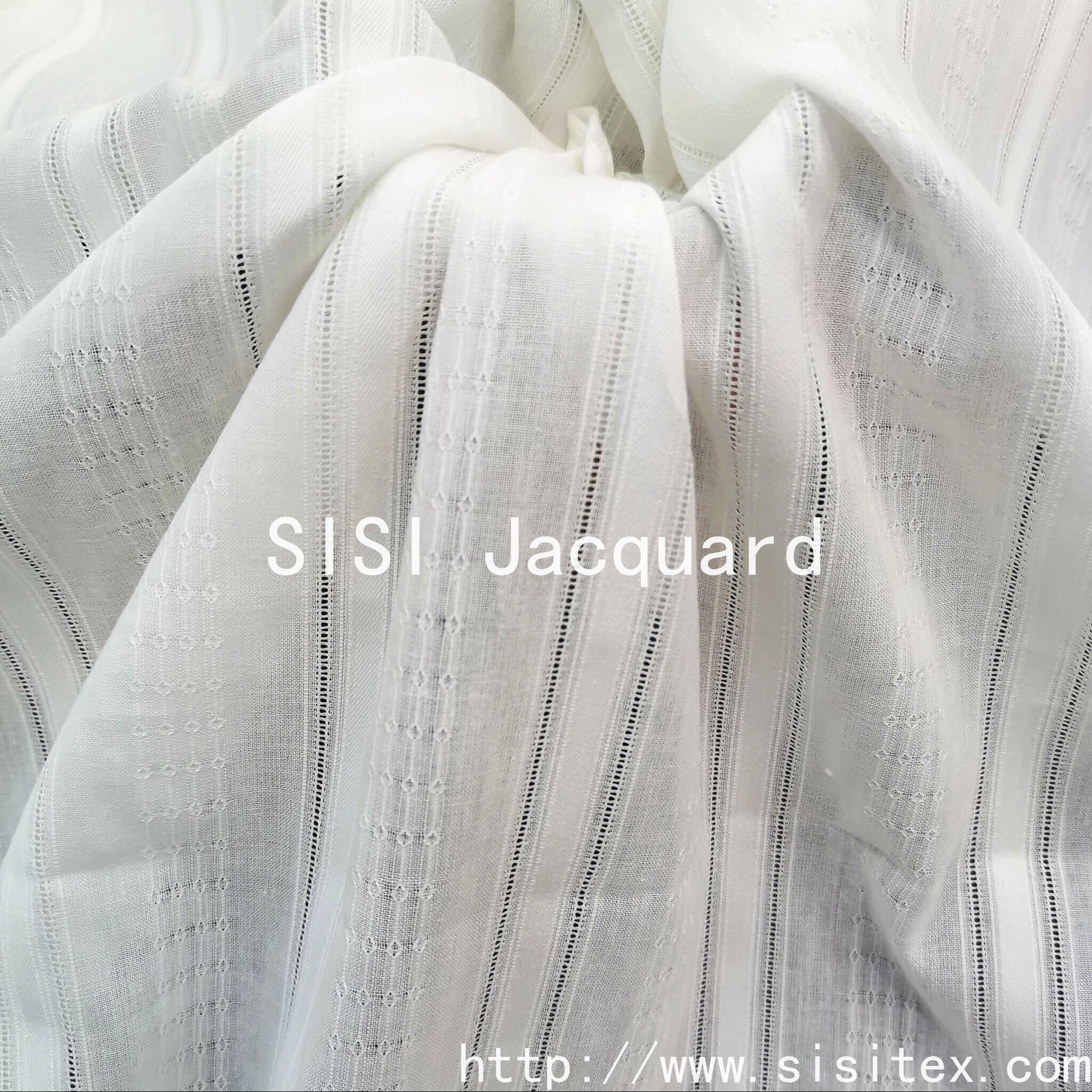 This all-cotton gauze vertical jacquard fabric innovatively combines classic vertical stripes with gauze craftsmanship, exuding a faint sense of light and shadow in its breathable texture. The three-dimensional jacquard pattern endows the stripes with dynamic layers, and the all-cotton material ensures skin-friendly softness. It is an ideal choice for making light and thin summer items. Whether it's a smooth dress or a breathable home curtain, they can add a touch of fresh rhythm to your design and life.
