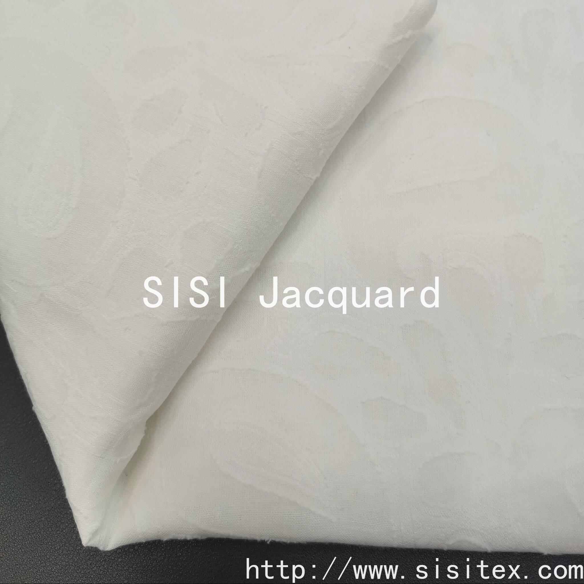 2. **Advanced Texture and Grain:** The jacquard weave combined with the cutting and embroidery techniques gives the fabric an outstanding texture and depth of light and shadow, significantly enhancing the quality and sophistication of the garment or product.