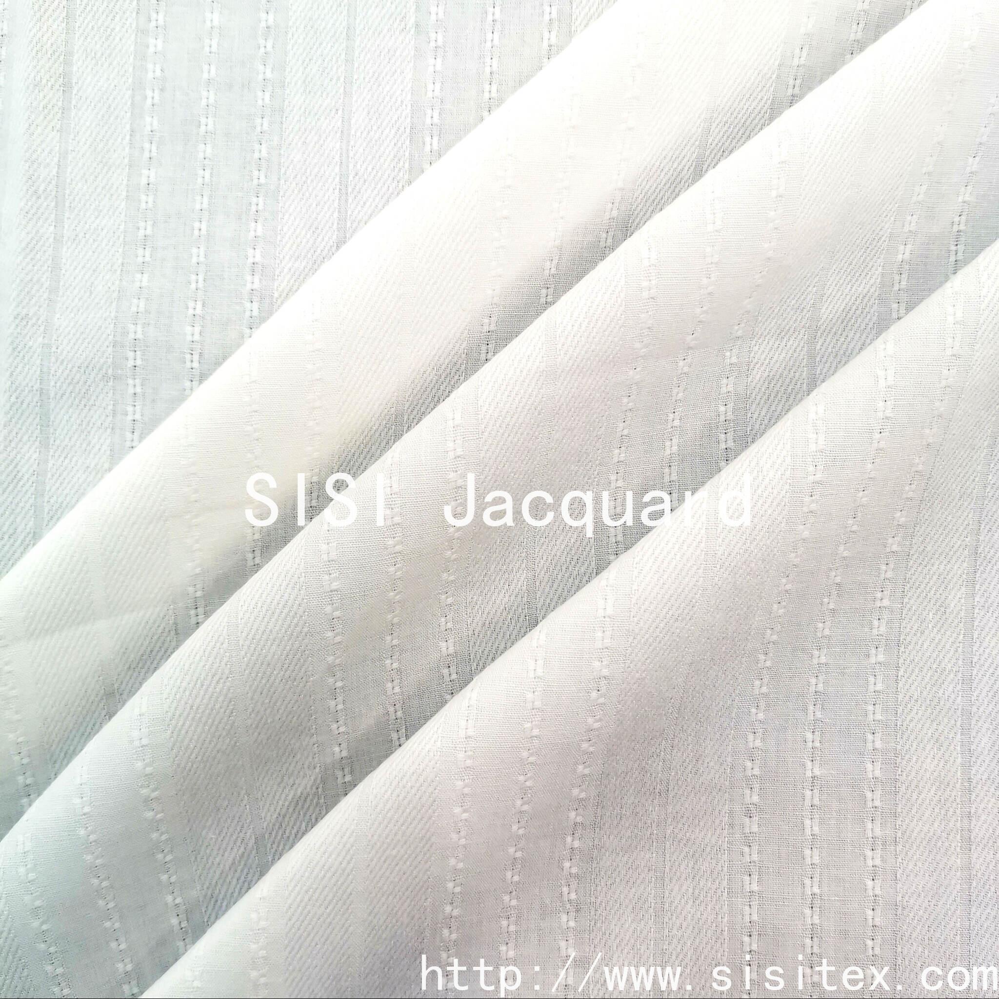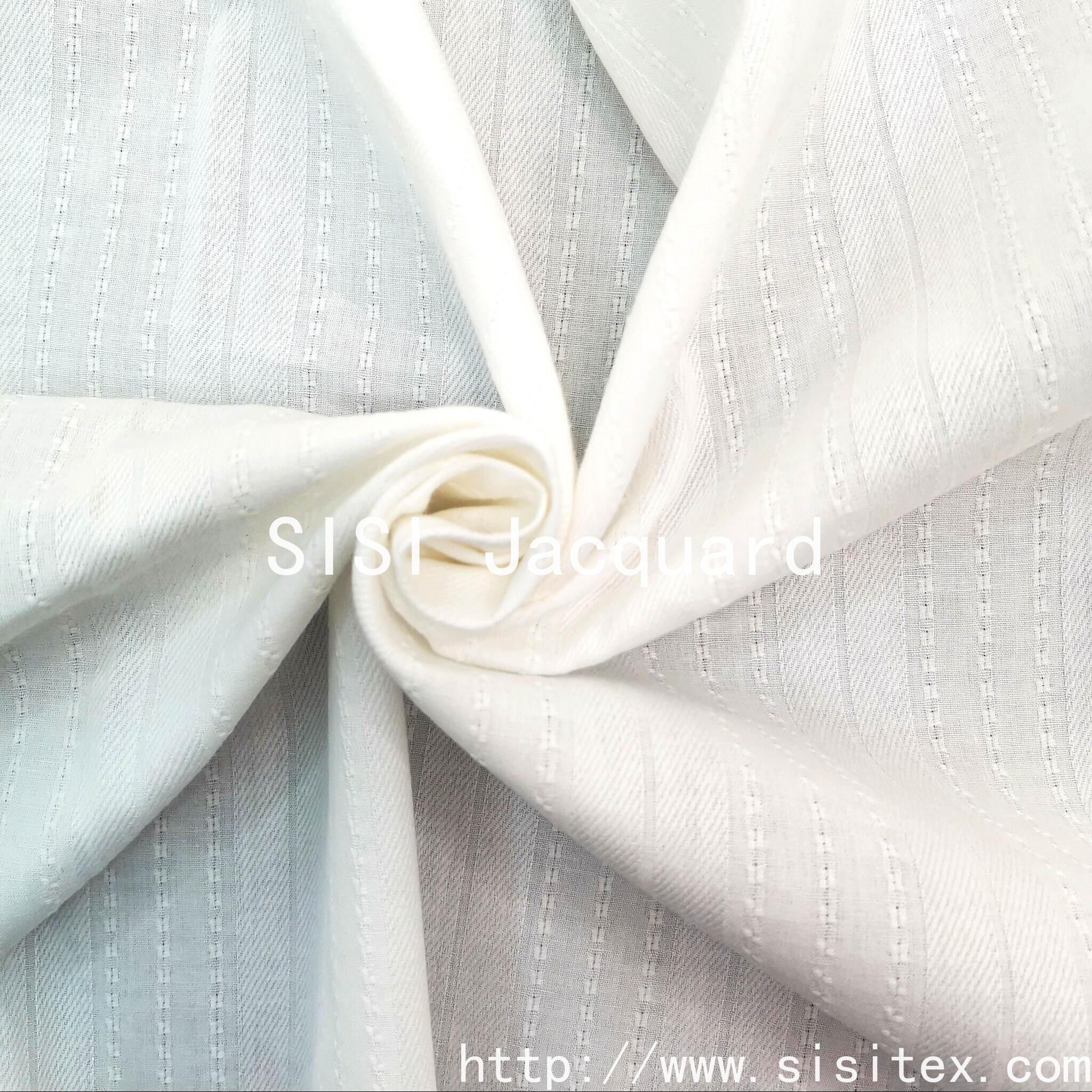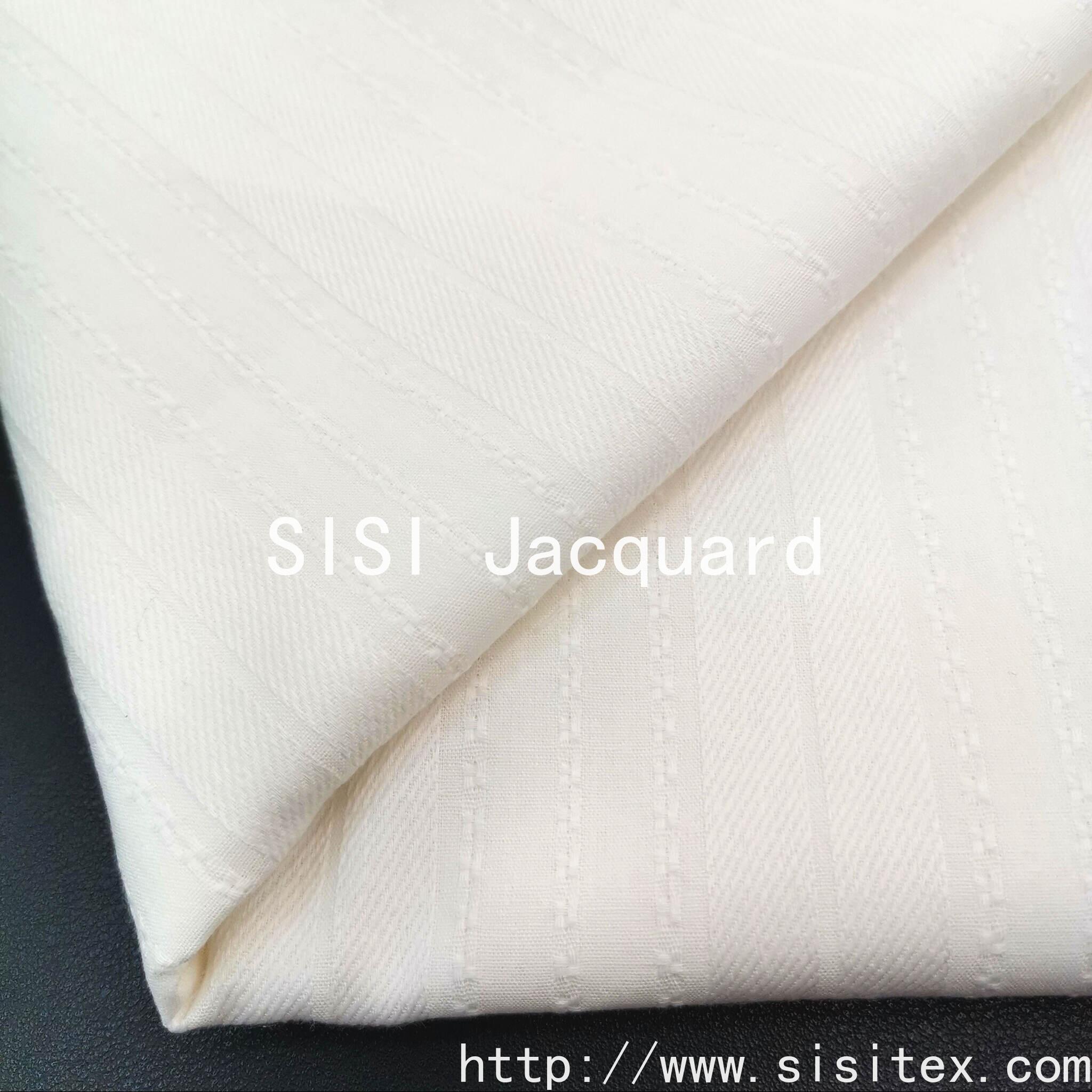 "Shaoxing Si Si Textile Co., Ltd. has meticulously crafted all-cotton vertical stripe jacquard fabric, which seamlessly combines natural comfort with fashionable aesthetics. Using high-quality long-staple cotton, the vertical stripe jacquard design elongates the figure, and the three-dimensional jacquard embellishments add a touch of elegance. Whether it's for making casual shirts, flowing dresses, or home soft furnishings, this fabric can infuse your designs with a simple yet sophisticated style. The eco-friendly material is soft, breathable, and is a choice that prioritizes both quality and style."