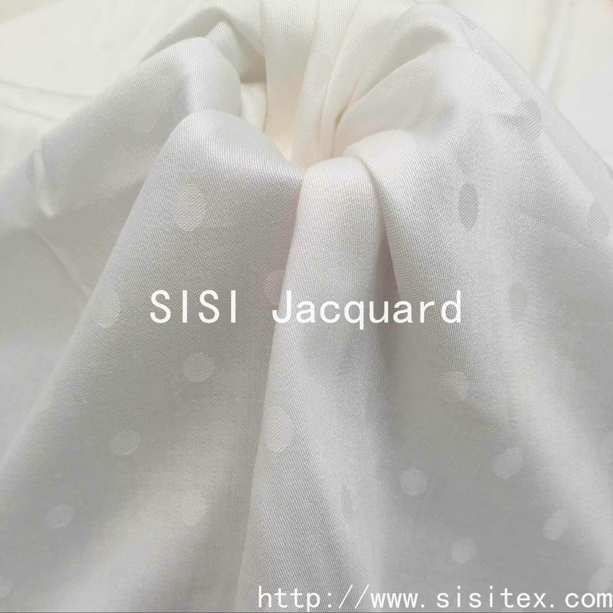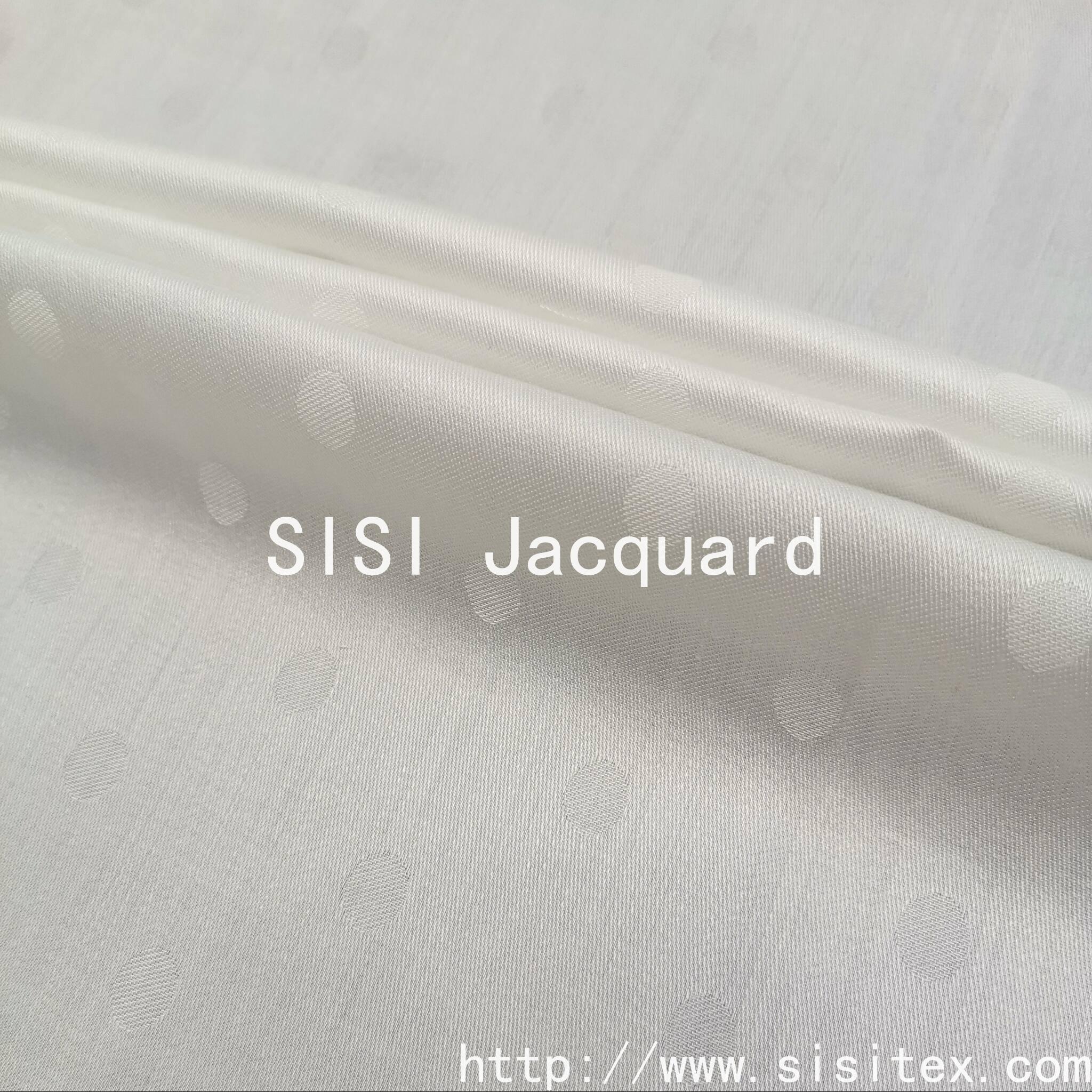 3. **Jacquard texture, exquisite and three-dimensional:** The **jacquard technique** weaves **distinctly textured circular patterns** onto the smooth satin surface, giving the fabric a rich **three-dimensional texture and visual depth**, highlighting the quality through its details.
