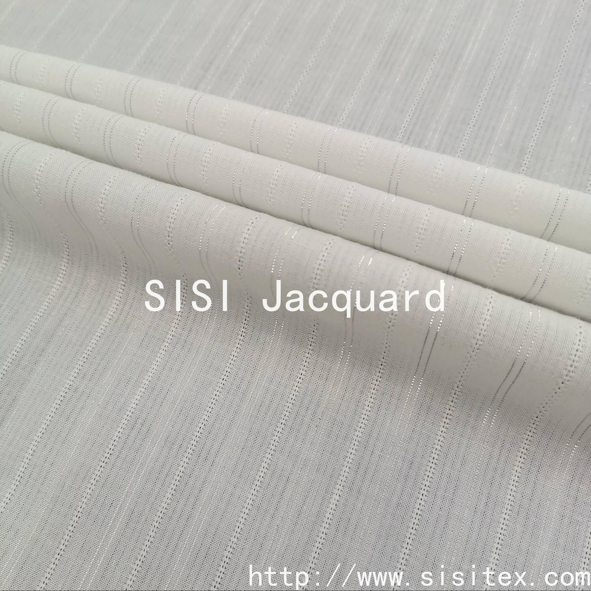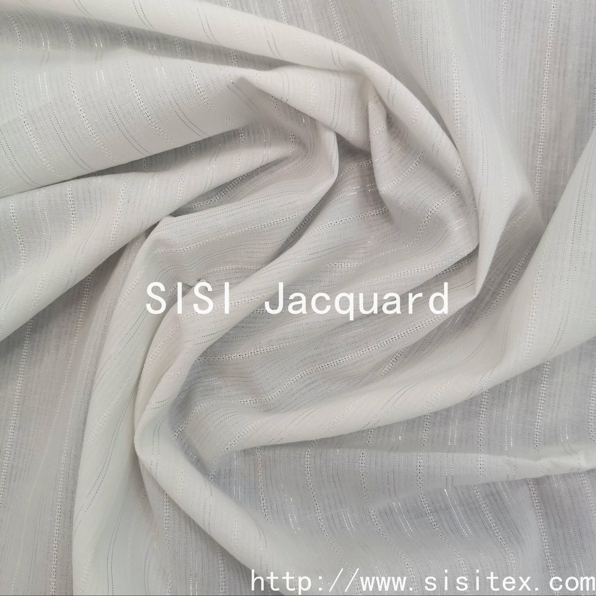 This all-cotton silver-striped jacquard fabric is made with 99% natural cotton as the base, complemented by 1% silver thread (LUREX). It ingeniously combines "skin-friendly comfort" with "technological texture". The vertical stripe jacquard technique makes the fabric lines neat and has a three-dimensional layering effect. It presents a simple and elegant appearance while hiding exquisite details. It is suitable for daily wear such as shirts, dresses, and home wear, and can also be used for bedding, scarves, and other home accessories. The combination of the skin-friendly breathability of natural cotton and the lustrous texture of the silver thread makes the basic fabric more "exquisite". It not only meets the comfort requirements of daily wear but also adds fashionable highlights to the outfit through the vertical stripe jacquard technique and the silver thread embellishment. It is the preferred fabric for those who pursue a sense of quality and compatibility with diverse styles.