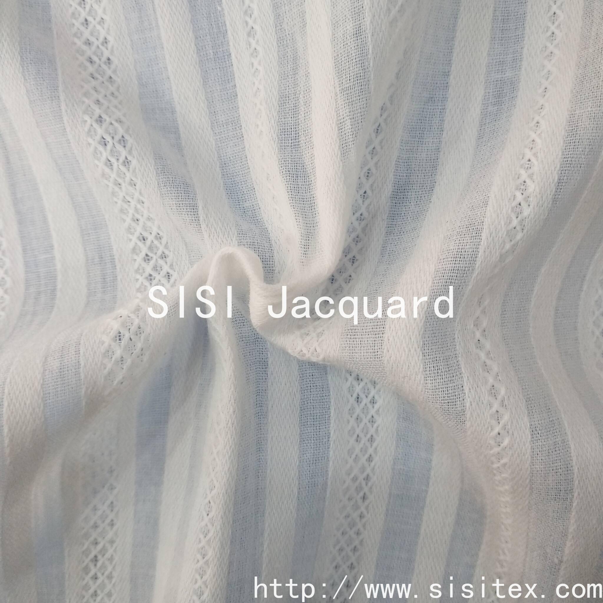 This 100% cotton muslin striped jacquard fabric is based on 100% natural cotton, integrating jacquard weaving technology with classic striped elements to create a dual experience of "skin-friendly comfort + artistic texture". 100% cotton is breathable and comfortable, suitable for all seasons, and does not burden the skin; the jacquard weaving technique gives the fabric a delicate and three-dimensional texture, visually exquisite and with rich texture, enhancing the design's layering effect; the classic striped elements are versatile and compatible with jacquard details, simplistically integrating artistic elements, suitable for various styles such as retro, minimalist, and casual; this fabric can be applied to clothing (t-shirts, shirts, dresses, etc.), home decor (tablecloths, curtains, bedding, etc.), and accessories (bags, scarves, etc.), meeting the needs of daily wear and space decoration. Whether it is for daily casual wear seeking comfort or creative design emphasizing artistic elements, this fabric can inject natural texture and exquisite details into the work, making it an excellent choice for the development of spring and summer new products.