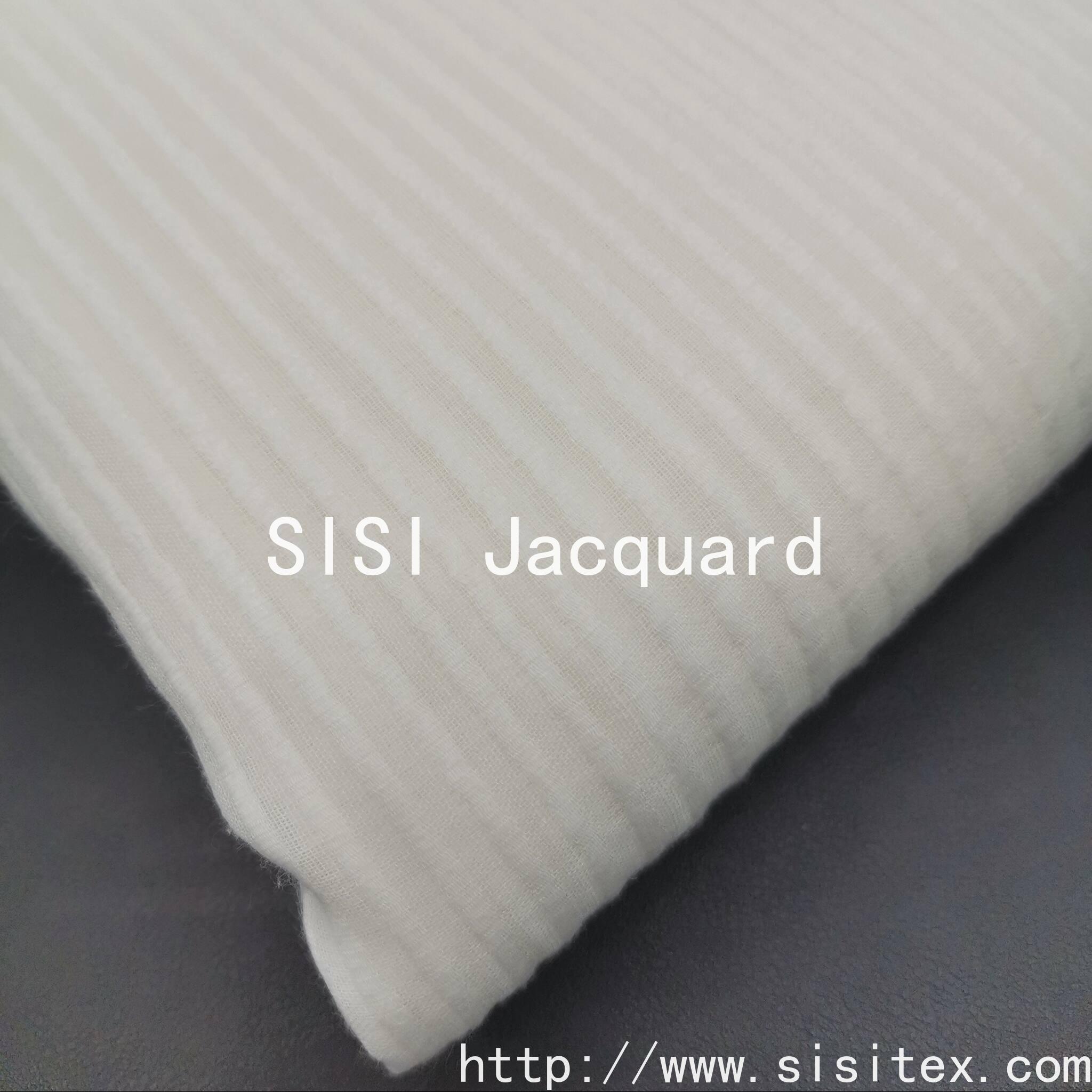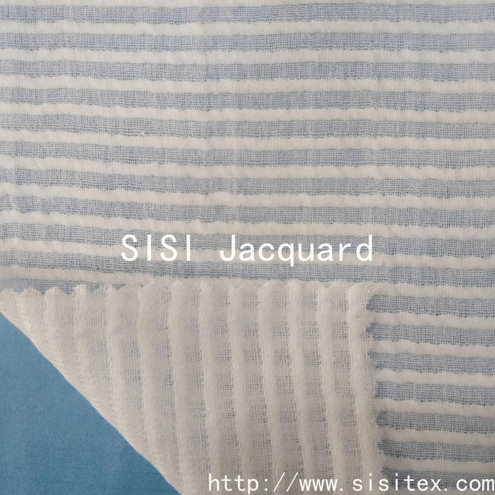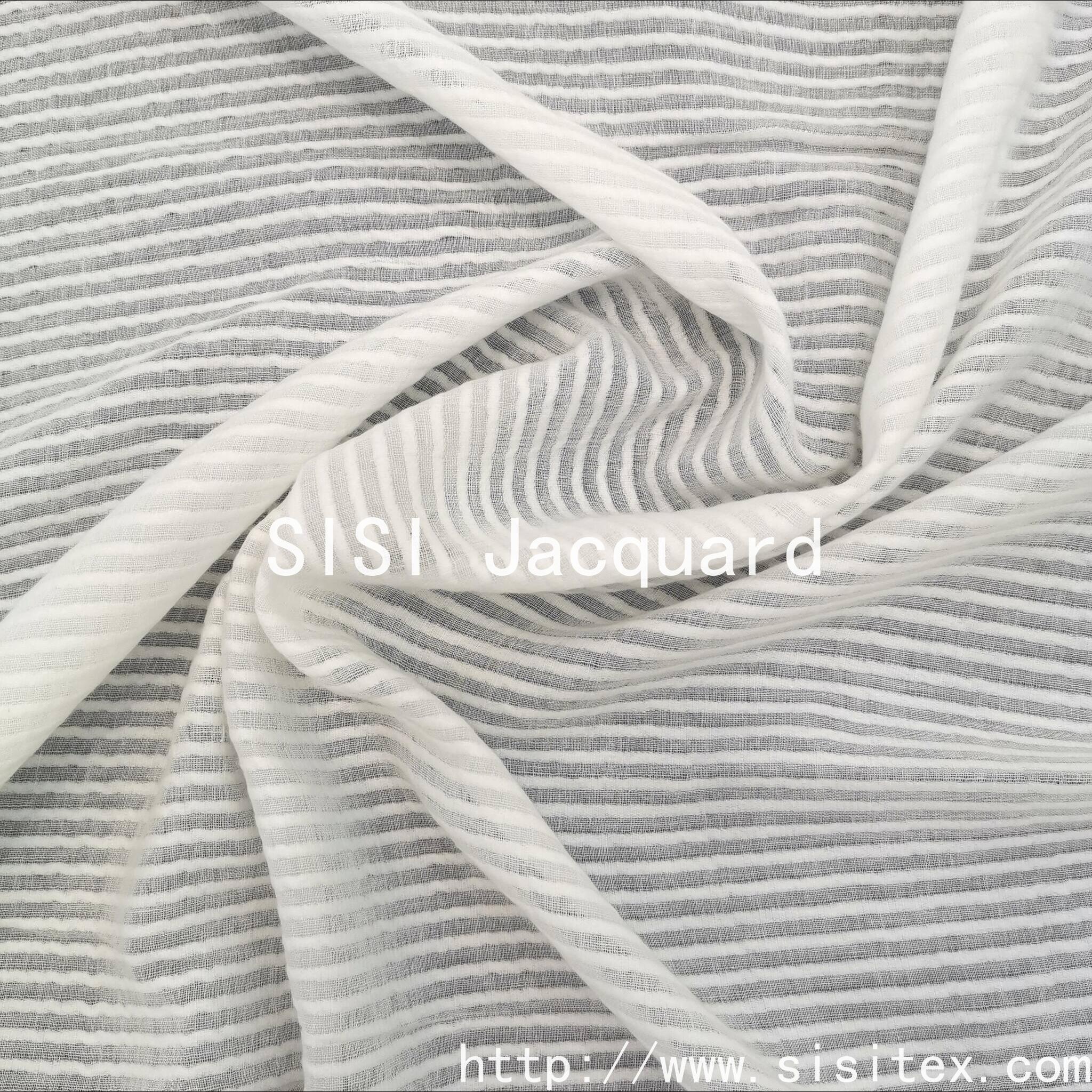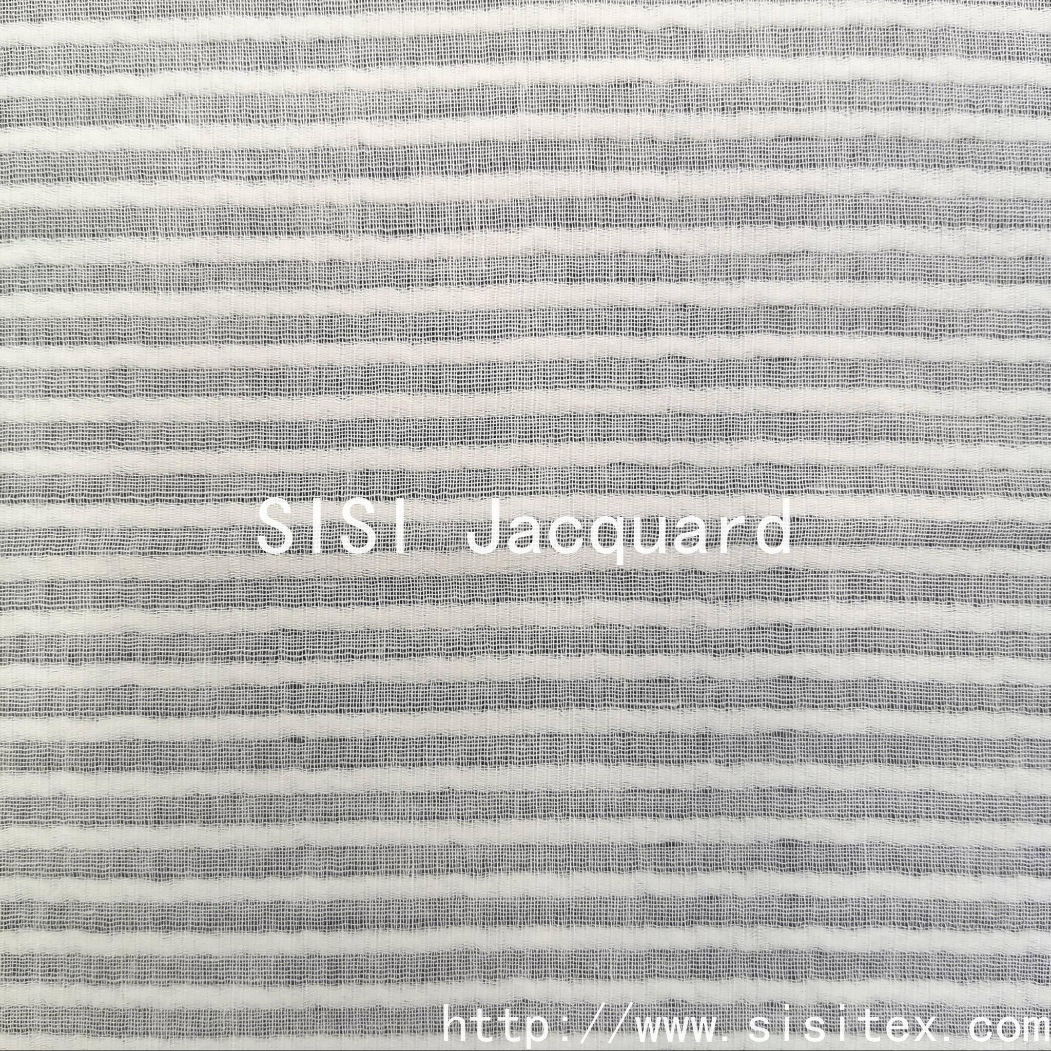 This is a gauze cross-stripe jacquard fabric, made of 100% cotton. It combines the natural comfort and breathability of cotton with excellent sweat absorption properties. The jacquard cross-stripe weaving technique gives the fabric a unique texture. The black and white stripes are classic and versatile, suitable for minimalist, retro, and casual styles. Whether used to make summer clothing (such as shirts, dresses, casual pants), or to create home items (such as bed sheets, pillowcases, tablecloths), it can meet the diverse needs of daily wear and home decoration with exquisite craftsmanship and comfortable texture. It is the preferred fabric for those who pursue quality and fashion.