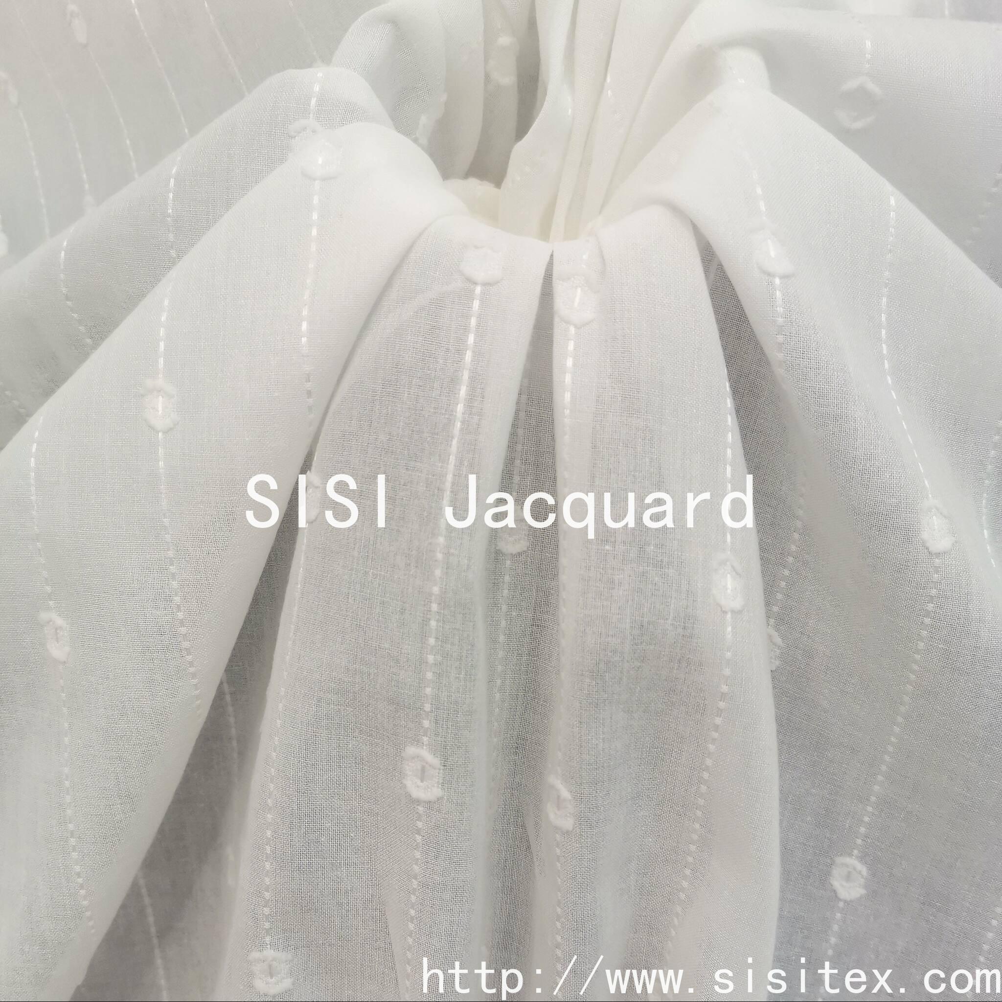 This fabric is a cotton-polyester vertical stripe jacquard round-cut pattern fabric, with the item number SS18643. Its composition is 78% cotton and 22% polyester. It is crafted with vertical stripe jacquard technology to create classic textures, and combined with round-cut pattern technology to add exquisite details. It combines retro elegance and lively sophistication. The fabric is lightweight and breathable, suitable for spring and summer seasons. It is made of cotton that is skin-friendly and polyester that is stiff, providing both comfort and durability. It can be widely used in shirt, dress, children's clothing and other clothing fields, and can also be extended to home soft furnishing scenarios. It is a high-quality fabric with both design sense and practicality.