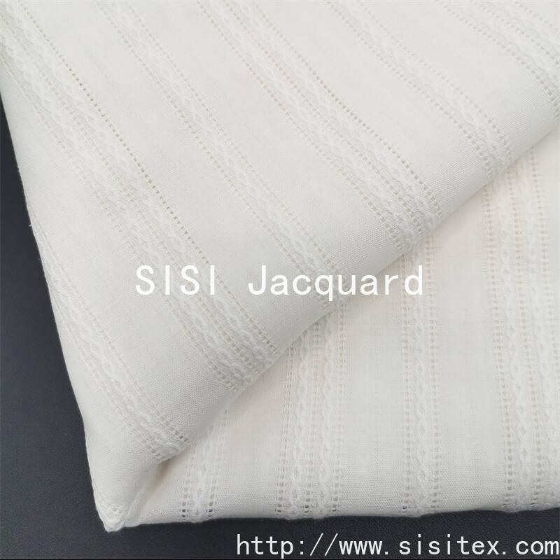 This pure cotton yarn linen strip fabric is woven from high-quality cotton yarn, with a soft and skin-friendly texture and excellent breathability. The unique twist texture combined with jacquard craftsmanship presents a delicate three-dimensional effect and a fine sense of layering. It not only retains the natural and simple style but also adds fashionable design elements. The fabric has a good drape and is suitable for making all kinds of casual and light retro style clothing.