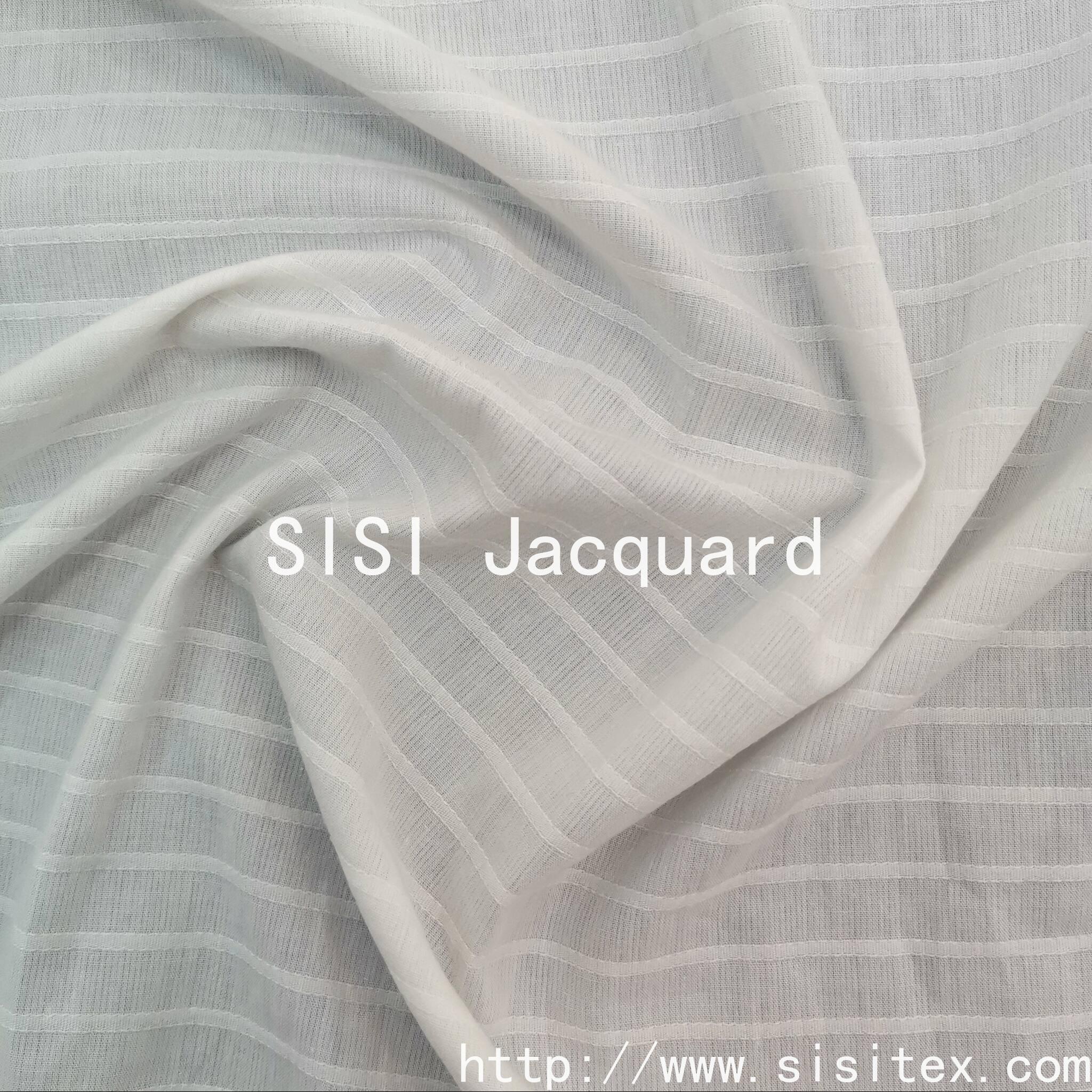 This is a piece of cotton jacquard fabric, made of 100% natural cotton fibers, featuring a combination of skin-friendly breathability and lightweight texture. Through the jacquard weaving process, it precisely presents delicate patterns, achieving artistic decorative effects without the need for printing or dyeing. It is environmentally friendly and visually high-end. It is suitable for women's clothing (such as dresses, shirts, skirts, etc.) and home soft furnishings (such as curtains, tablecloths, bedding, etc.), creating a "light and artistic style" look. It is the ideal choice for designers and consumers who pursue natural texture and exquisite design.
