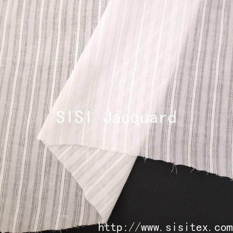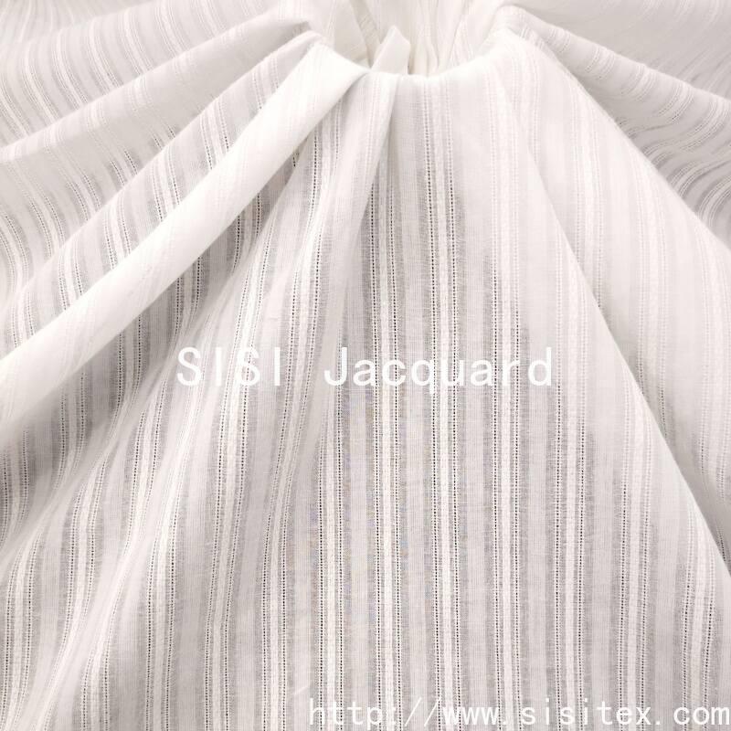 This all-cotton muslin jacquard fabric is made of 100% natural cotton. The muslin weave gives the fabric a light and breathable characteristic, while the jacquard weaving technique creates a delicate and exquisite texture. The classic stripe/striped pattern elements carry a retro and elegant gene, suitable for women's clothing, children's clothing, Hanfu and other clothing fields, and can also be used for home soft furnishings. The 100% cotton fabric is comfortable and breathable, the jacquard weaving technique is exquisite, and the retro style is versatile. This fabric achieves a perfect balance between practicality and aesthetics, making it an ideal choice for spring clothing and soft furnishing designs.
