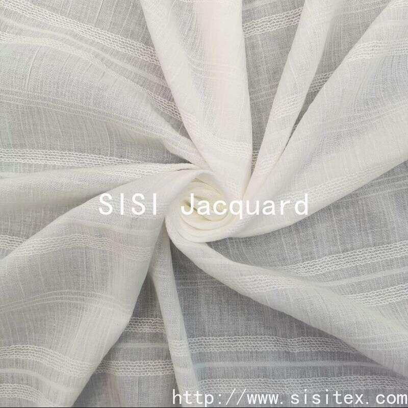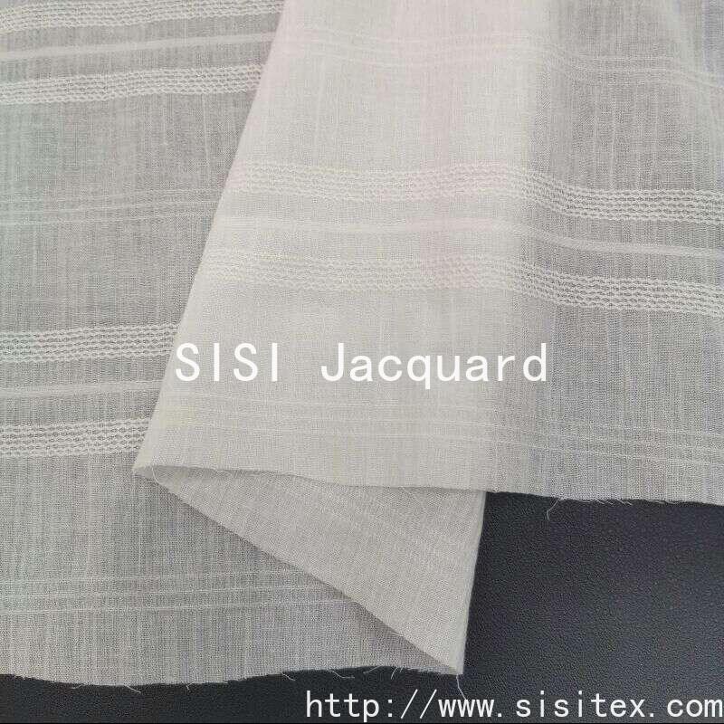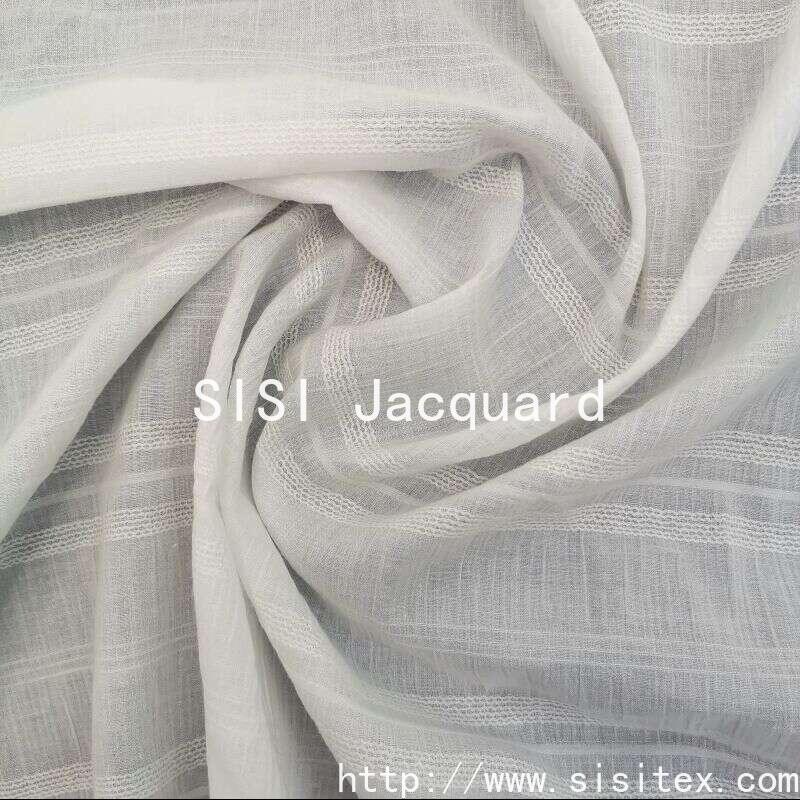 This is a cotton voile spandex jacquard fabric, scientifically composed of 97% cotton and 3% spandex. The voile structure endows the fabric with lightweight and breathable characteristics, while the jacquard technique weaves delicate patterns on the surface of the fabric, giving each piece of clothing an artistic touch. The addition of 3% spandex makes the fabric have both elasticity and fit, suitable for various cutting requirements. Whether it is used to create summer dresses, shirts, or half-length skirts and shorts, this fabric can combine "breathability + elasticity + jacquard" to infuse the clothing with the unique charm of "simultaneous comfort and elegance", making it the preferred material for designers and consumers who pursue "natural texture + design sense".