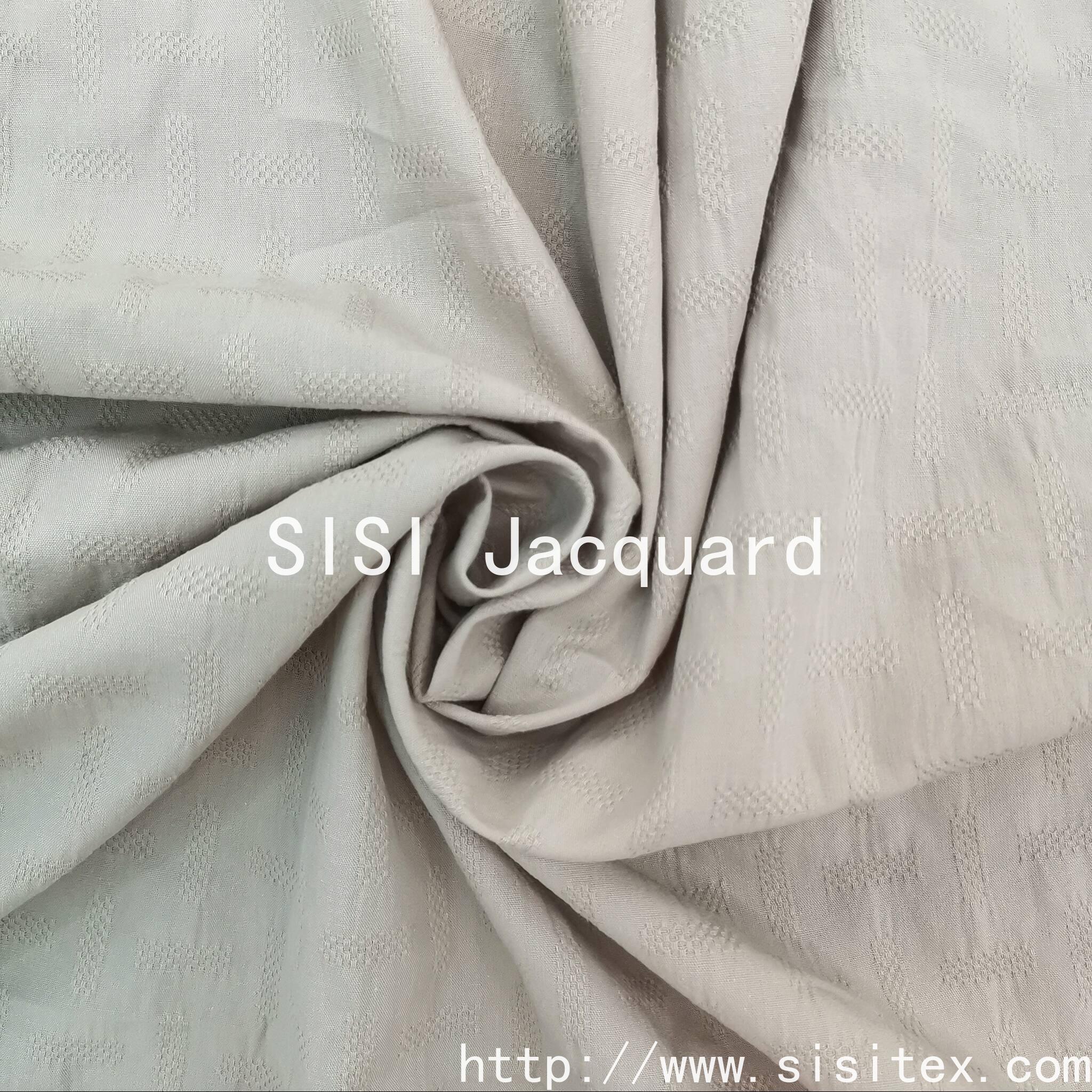 This product is a comprehensive honeycomb jacquard fabric SS18677, made of 100% cotton, with a woven jacquard technique. The fabric has a fine and exquisite texture, featuring both breathability and texture. It is suitable for women's blouses, dresses, home wear, children's clothing, etc. The style is light and luxurious casual, with a niche design sense, and it is suitable for various style outfits. The core advantages are natural cotton that is comfortable and breathable, exquisite jacquard technique, suitable for all seasons, and environmental sustainability.