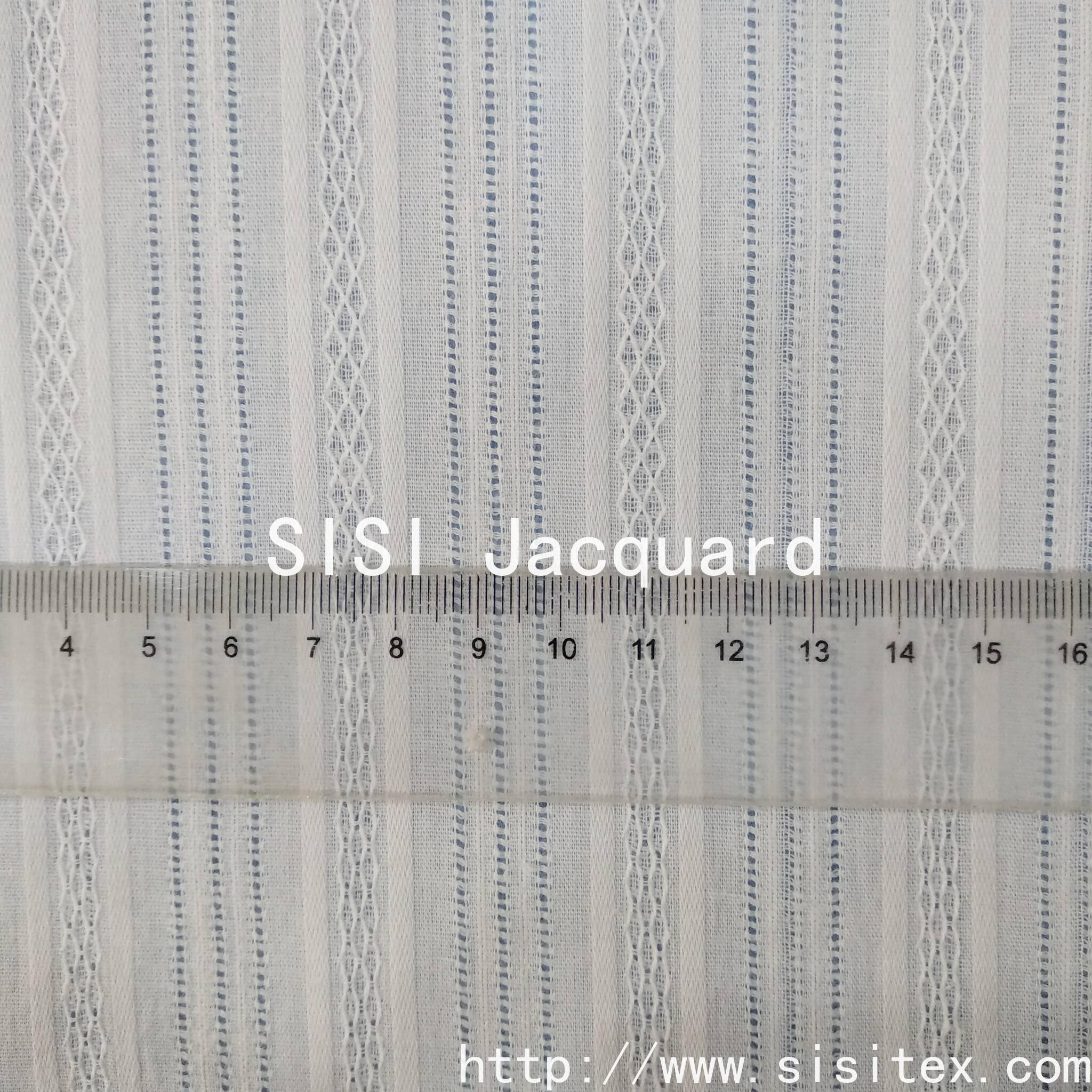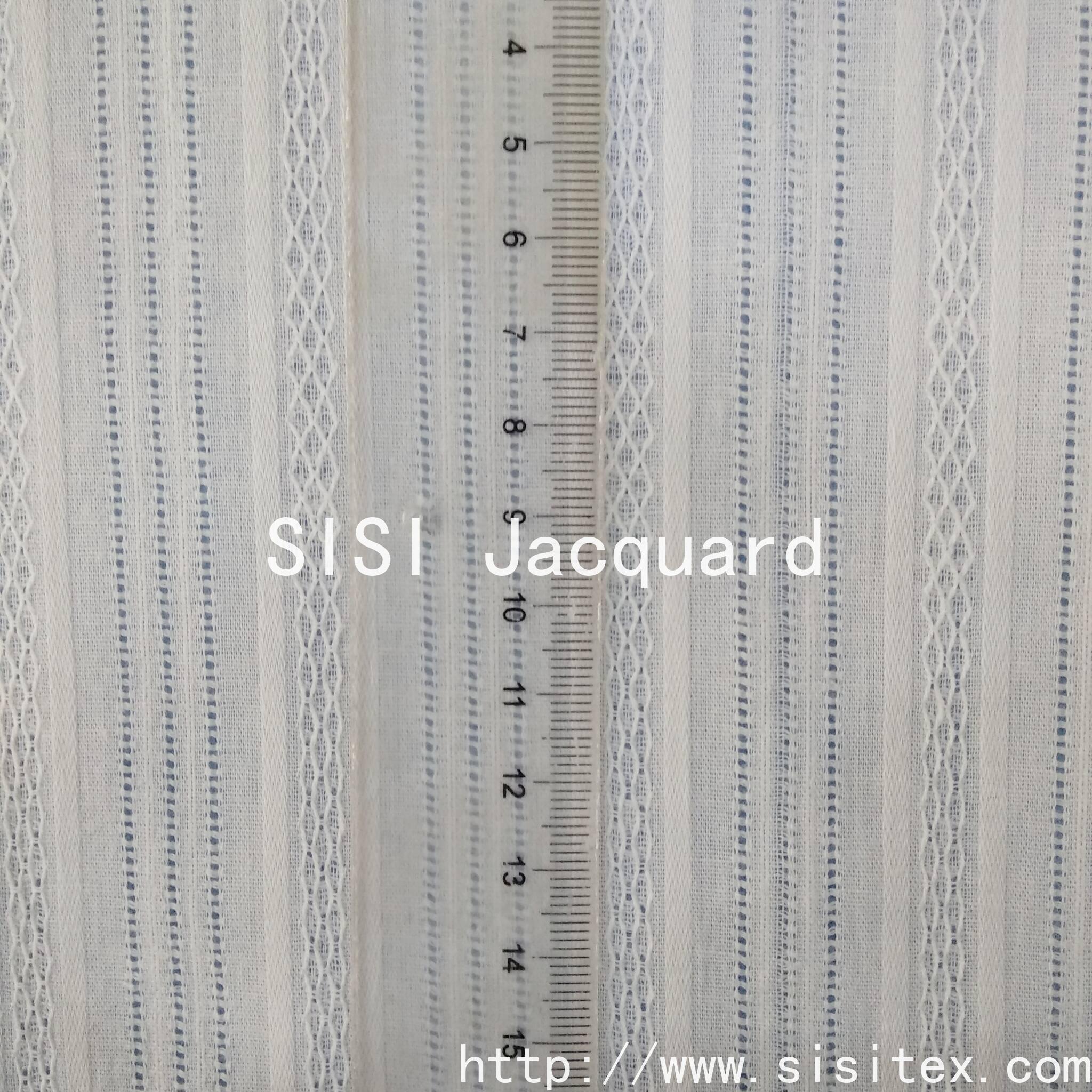 This is a woven cotton muslin fabric with vertical striped jacquard pattern. It is made of 100% natural cotton and combines the comfortable properties of breathability and skin-friendliness with the exquisite details of jacquard weaving. The vertical striped jacquard pattern is detailed and three-dimensional, looking simple and elegant from a distance and rich in texture when viewed closely, adding depth to the design. The fabric is produced by weaving technology, with a stable structure that is not prone to deformation, making it suitable for creating summer women's wear (shirts, dresses, skirts), children's wear (shirts, dresses, home wear), and DIY handicrafts (aprons, cushions, etc.). The natural cotton material is skin-friendly and non-irritating, and the jacquard weaving gives the fabric a unique texture. It is the preferred fabric for those who pursue a "comfortable + refined" style.