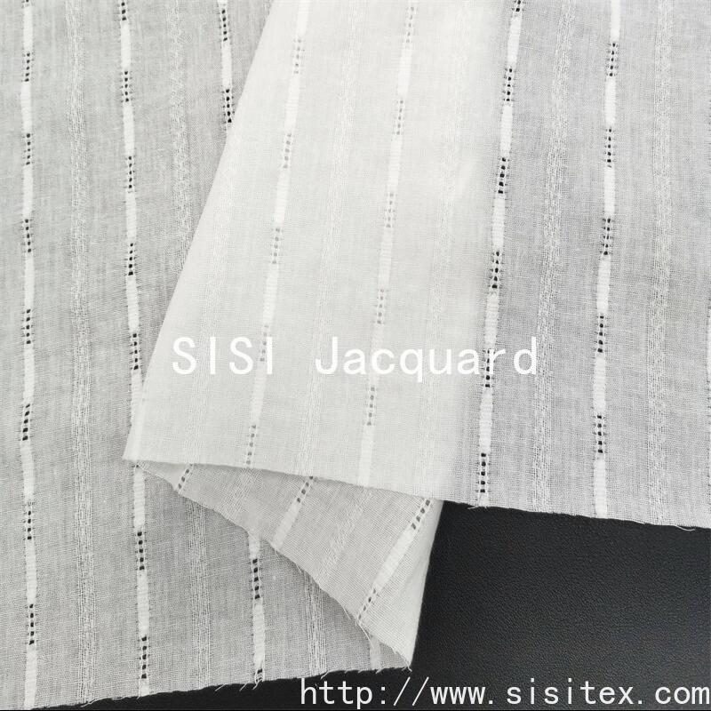 This all-cotton gauze hollowed-out jacquard fabric is made from 100% high-quality long-staple cotton. By combining traditional gauze weaving techniques with modern jacquard technology, it creates unique hollowed-out stripes and exquisite jacquard patterns. The fabric is light and transparent in texture. The surface of the fabric presents regular hollowed-out patterns and three-dimensional jacquard details, combining excellent breathability and a soft drape, perfectly interpreting the high-end texture of "transparent but not revealing".