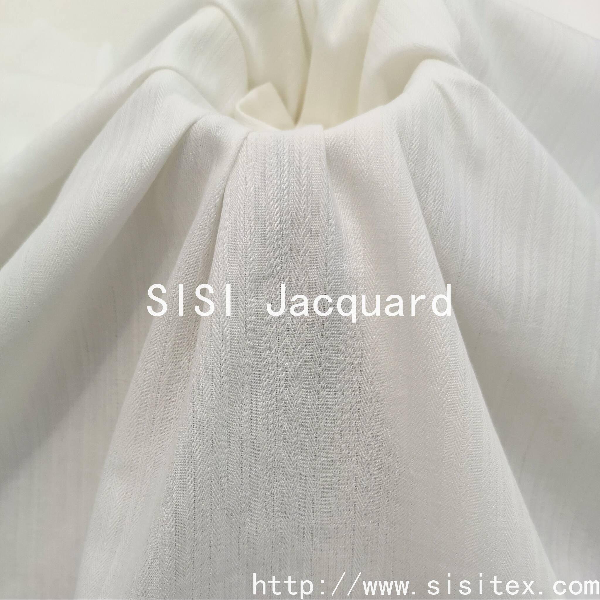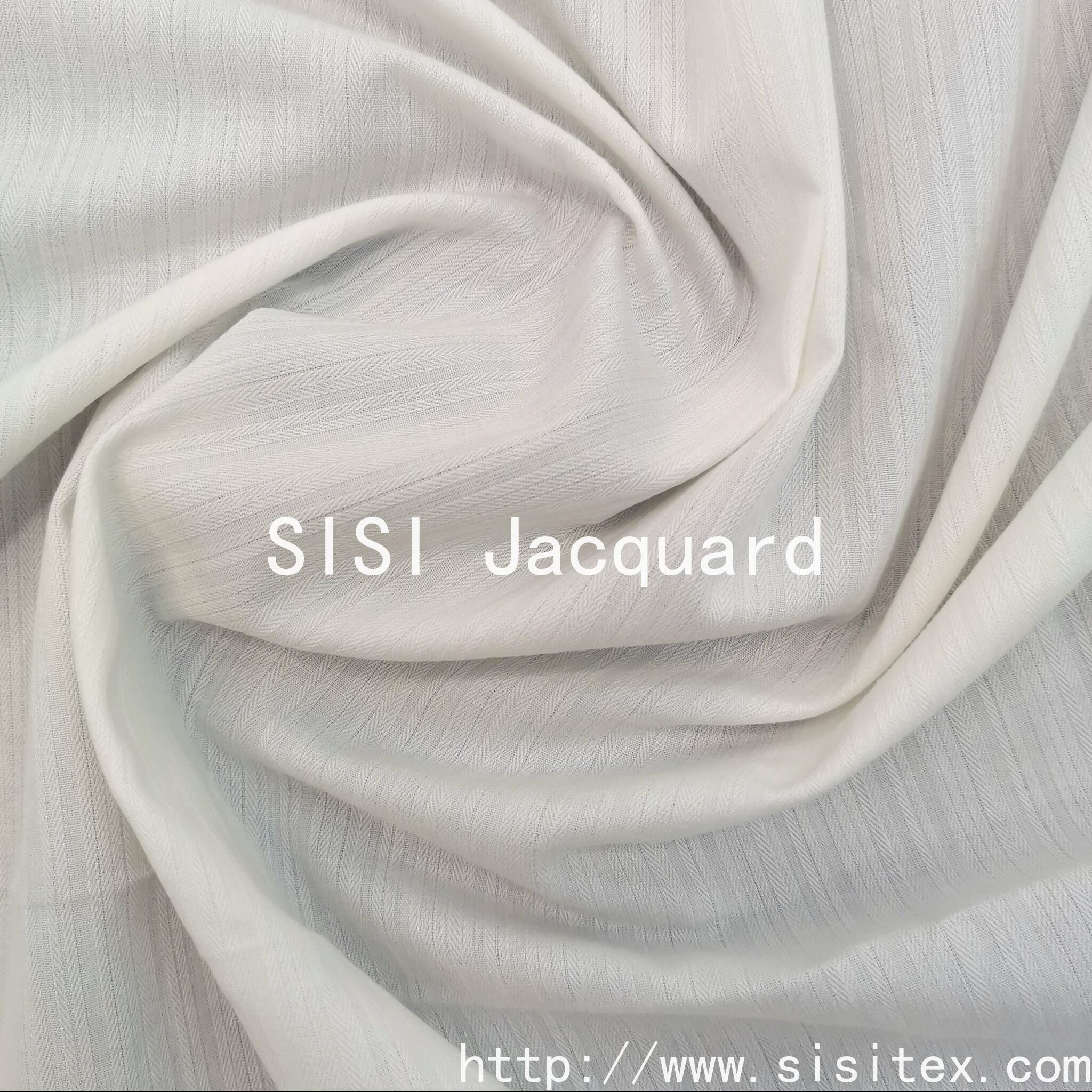 This is a 100% cotton jacquard fabric, featuring a natural skin-friendly and breathable property. The jacquard technique creates unique textures through the interweaving of warp and weft yarns, allowing the fabric to maintain its soft cotton feel while adding artistic details.