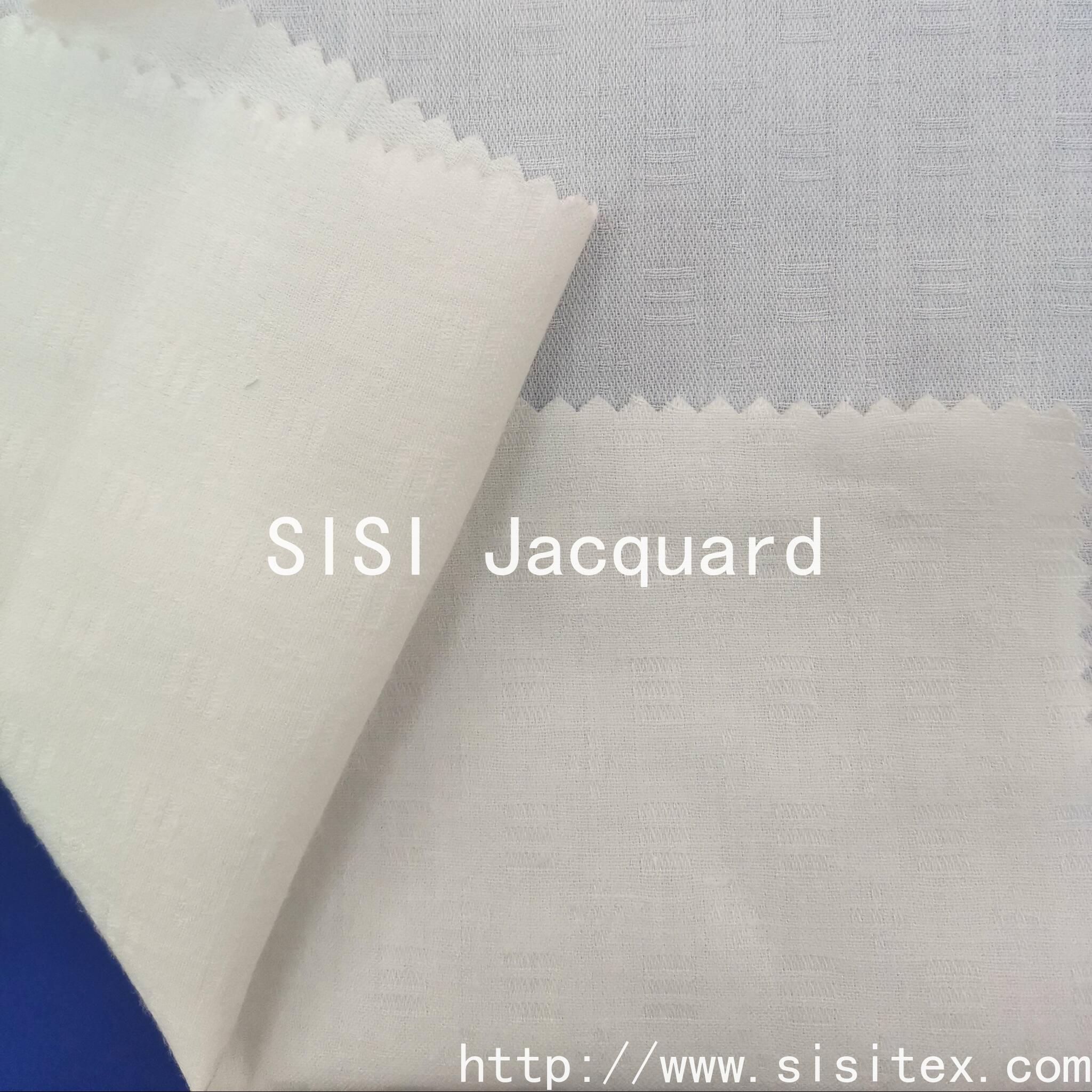 Woven cotton jacquard fabric, made by weaving 100% natural cotton yarn, featuring a jacquard technique to create a three-dimensional checkered pattern.
