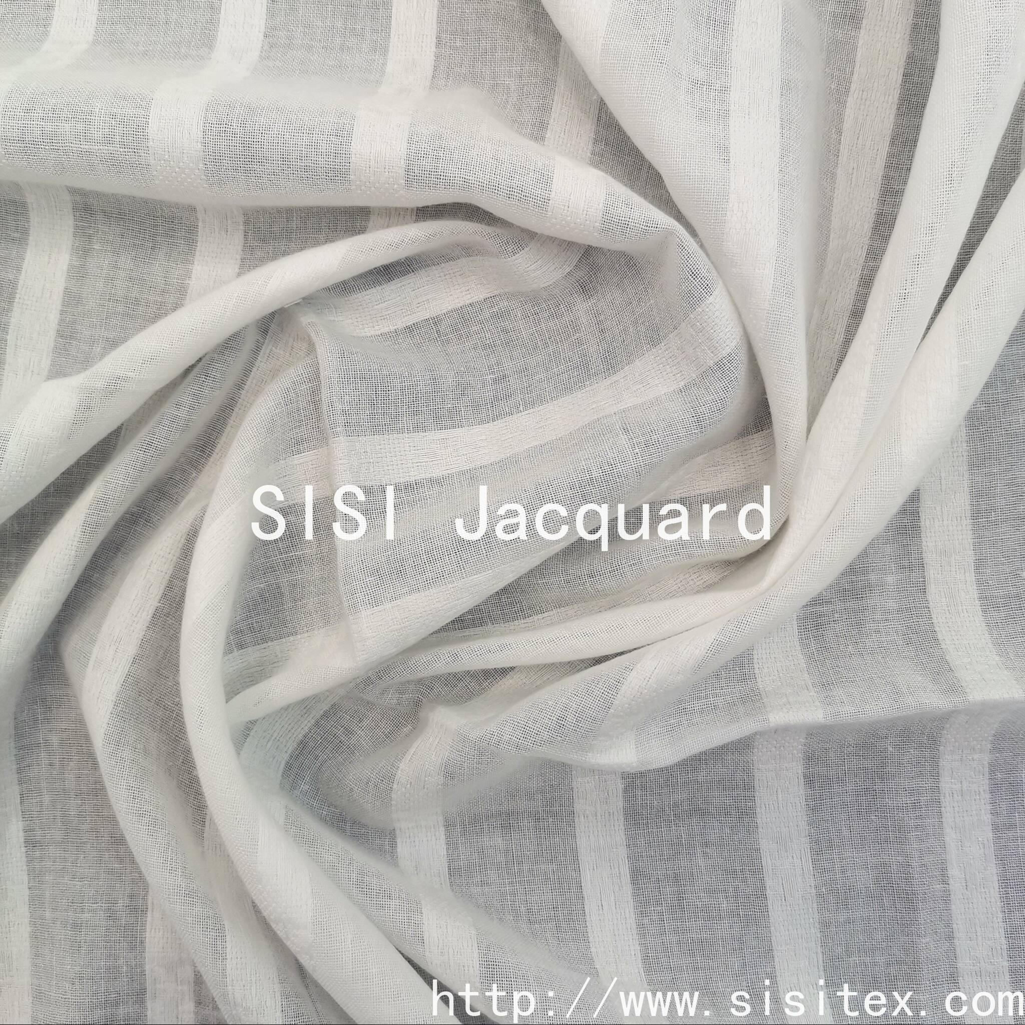 This product is made of 100% natural cotton and features the SS18177 all-cotton gauze vertical jacquard fabric. Through the jacquard weaving technique, the vertical stripe pattern naturally blends into the fabric texture, preserving the natural properties of cotton such as skin-friendliness and breathability, while also adding a refined and stable touch to the fabric. The vertical stripe jacquard has a "breathing" effect, with a fine texture under light and shadow, rich visual layers, and instantly elevating the sophistication of clothing or home accessories. The vertical stripe jacquard has a retro and elegant style, suitable for light and mature, elegant clothing; at the same time, the lines are neat, matching minimalist and commuting fashion, creating a simple yet not ordinary effect.