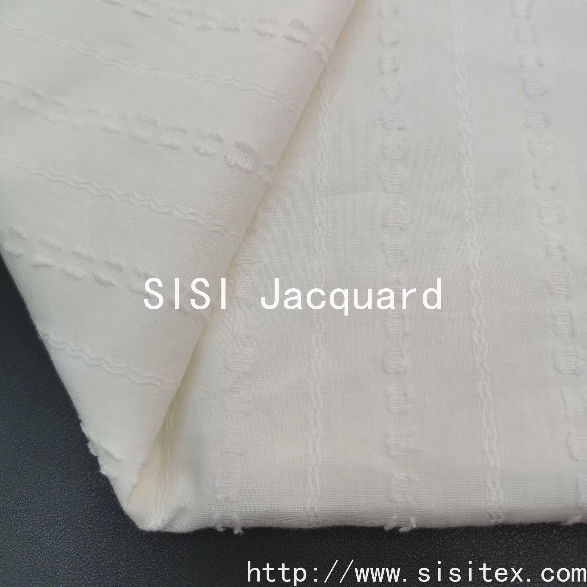 This product is made of 100% cotton vertical strip jacquard printed fabric SS18745. It is breathable and comfortable to wear, featuring artistic texture to create fashionable looks in spring and summer. The jacquard printing technique creates vertical strip three-dimensional texture, highlighting the artistic sense in details. It says goodbye to monotony. It combines freshness and artistic sense, suitable for various styles such as daily casual wear, mature elegance, and parent-child outfits. One piece of fabric can create fashionable looks for the entire spring and summer season. The natural cotton material is biodegradable, adhering to the sustainable fashion concept, and reducing the burden on the earth. It aligns with the current consumption trend of "sustainable fashion + personalized expression", becoming a key fabric choice for women's clothing designers to create "differentiated styles".