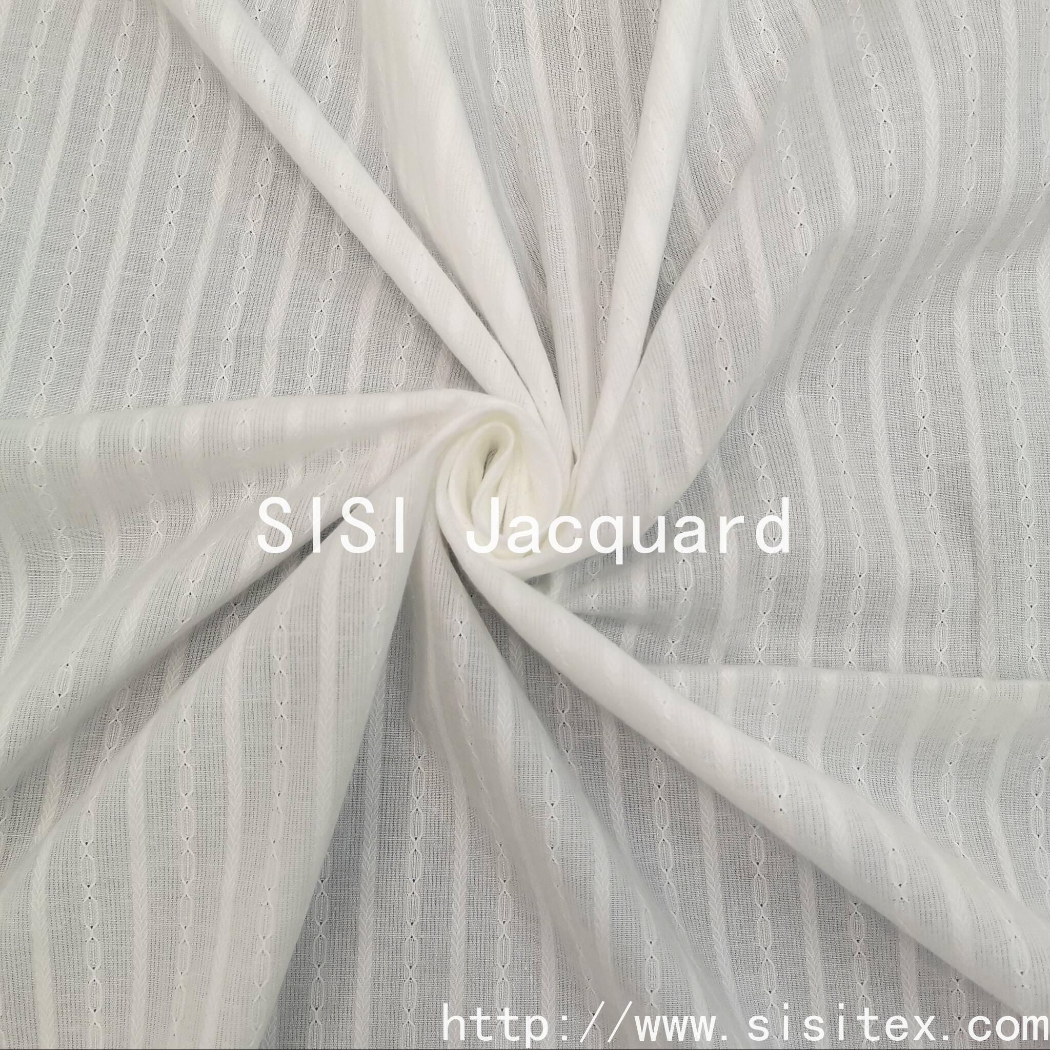 100% cotton material is naturally soft and skin-friendly, aligning with the "sustainable development" concept and meeting consumers' demands for environmentally friendly and healthy fabrics. The jacquard technique, through the precise interweaving of warp and weft yarns, presents light and breathable holes and exquisite patterns, echoing the trend requirements of "lightness and luster". It is lightweight and breathable, suitable for spring and summer seasons. The interweaving structure of the jacquard holes enhances air circulation, improving the comfort of wearing or using. The jacquard technique carries traditional Chinese textile culture, and the fabric combines "modern fashion sense" and "deep cultural sense", highlighting unique value.