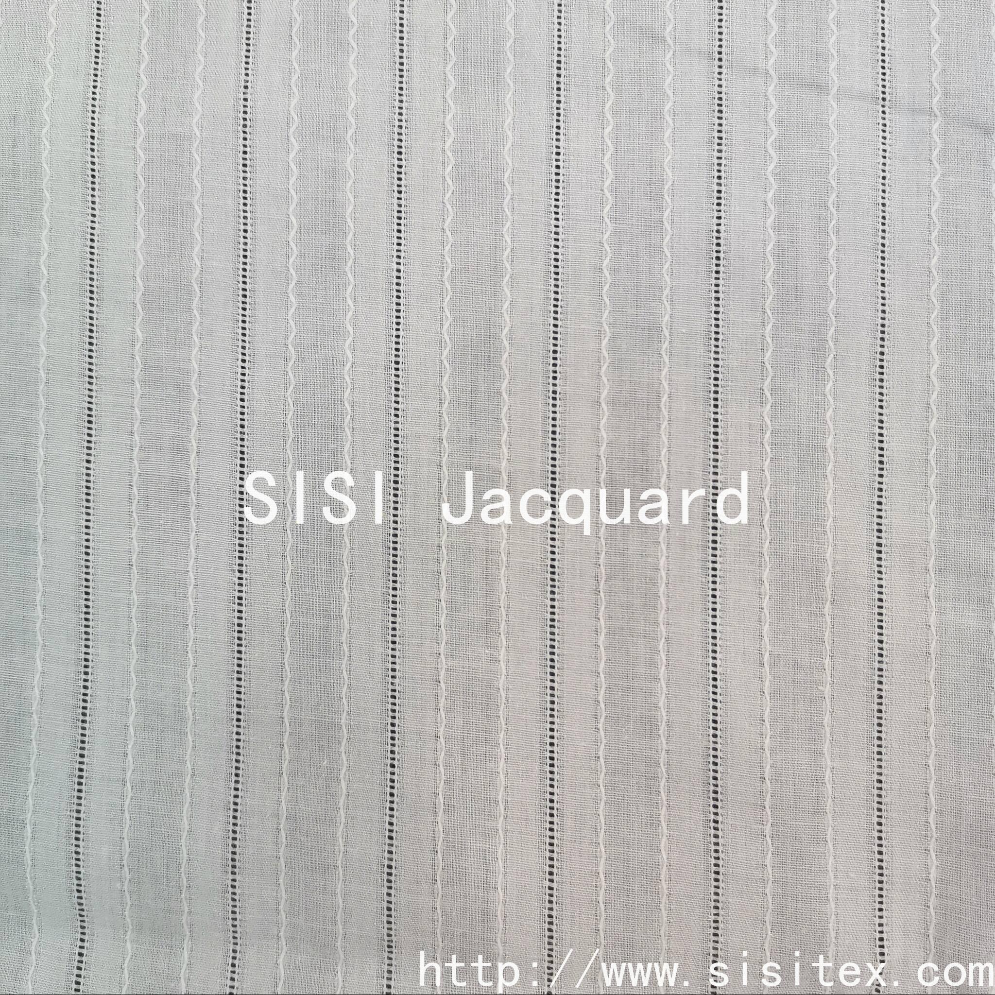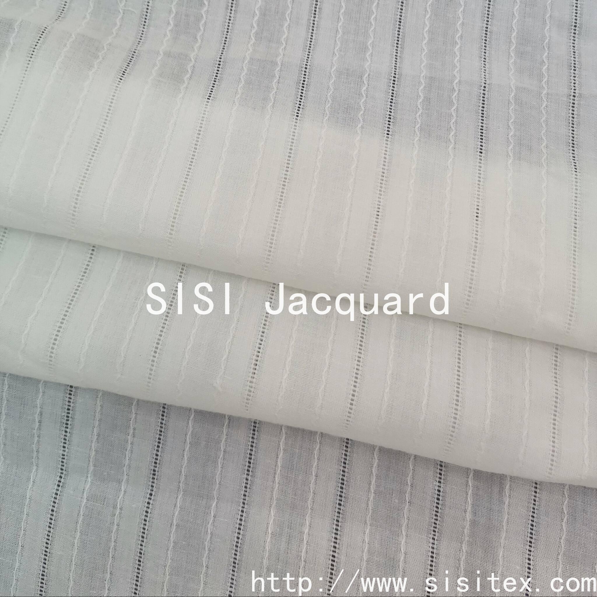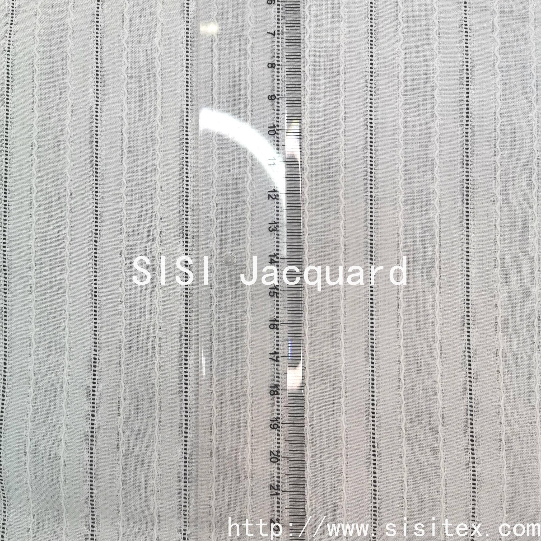 This product is a full-striped gauze fabric with hollow and jacquard patterns, SS18188. The design direction that combines naturalism with technology makes the jacquard the core carrier of "balancing aesthetics and functionality"; the pattern jacquard elements echo the retro style of Japan and South Korea, and the geometric texture creates a simple and elegant feeling;