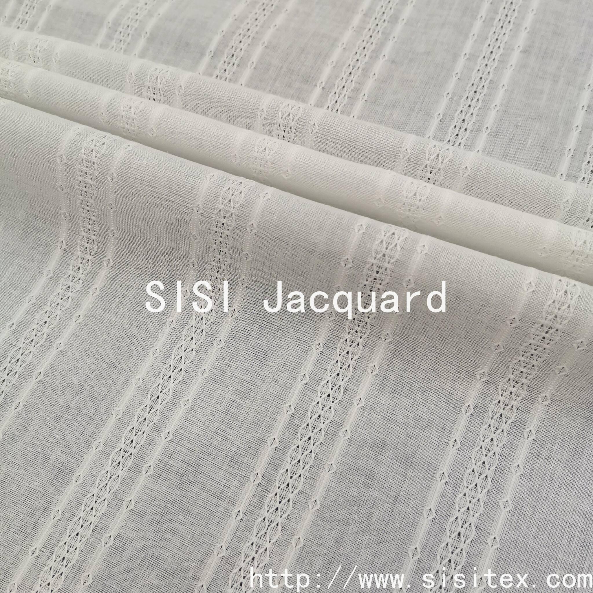 This product is a woven cotton muslin jacquard fabric SS18753. The all-cotton material aligns with the sustainable fashion trend. The jacquard technique gives the fabric a three-dimensional texture, meeting consumers' dual demands for "natural texture + unique design". It is suitable for everyday items such as shirts, dresses, and home wear. The combination of the jacquard pattern and the cotton's skin-friendly property creates a comfortable and aesthetically pleasing wearing experience. The jacquard technique replicates traditional patterns, combined with the warm texture of cotton, conveying the Eastern charm of "traditional aesthetics + modern design". The jacquard texture and the cotton's breathability are compatible, balancing both decorative and practical aspects.