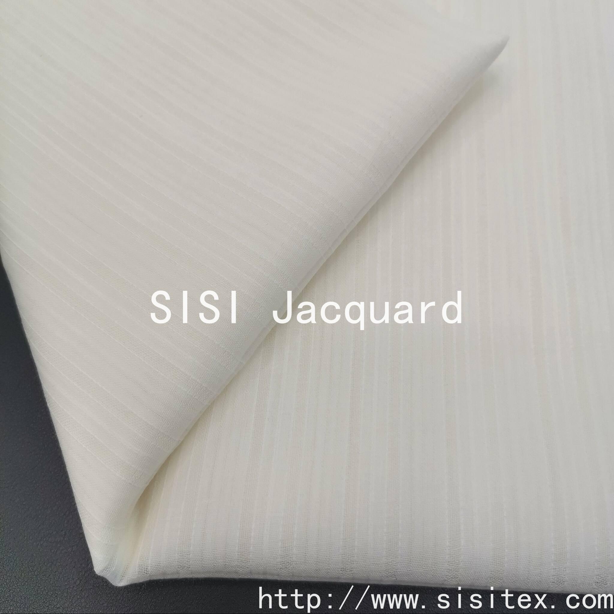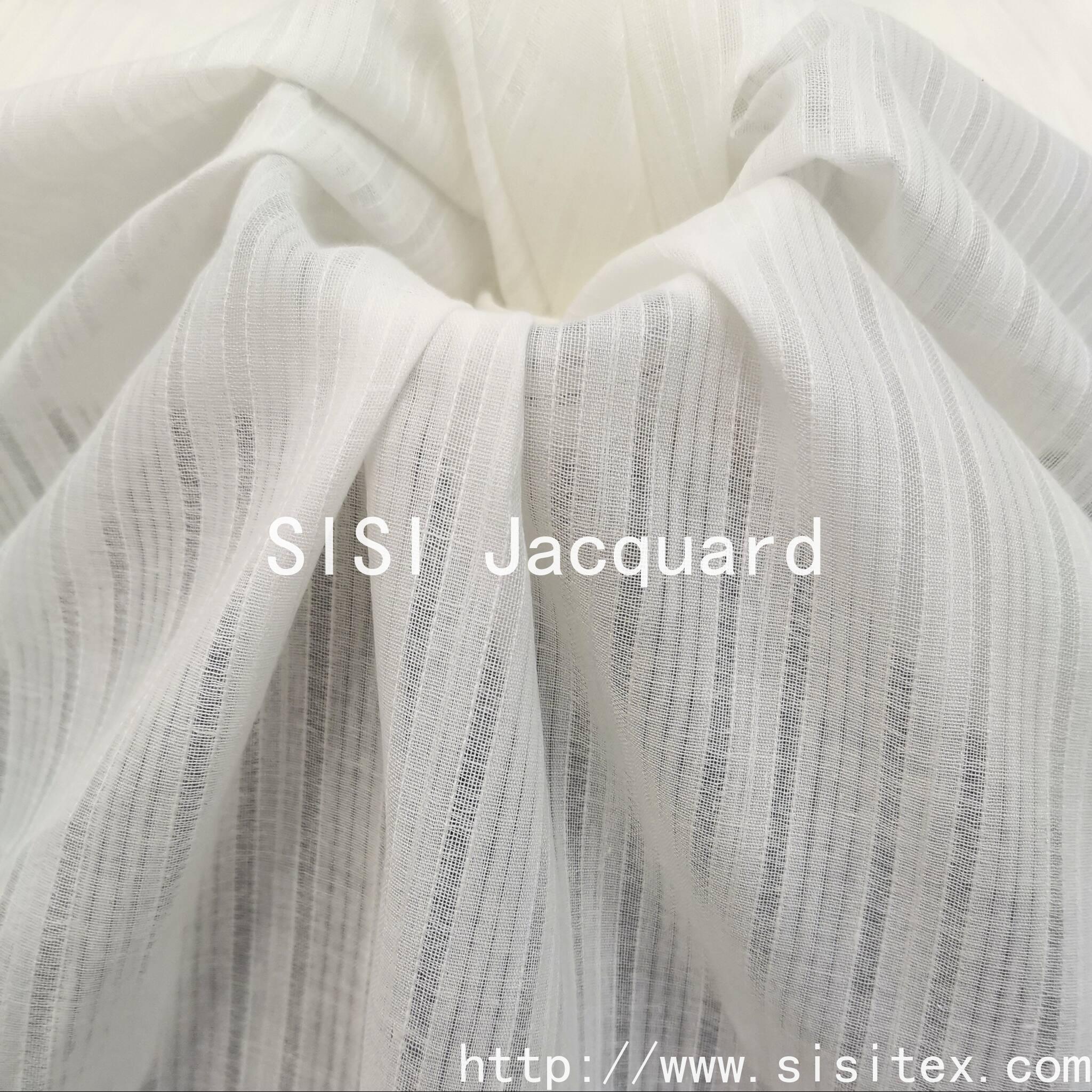 This product is a woven cotton voile with hidden strip jacquard fabric SS18191. It is made of 100% pure cotton yarn. The woven voile structure ensures good breathability. The hidden strip jacquard technique creates delicate textures, presenting a visually exquisite and soft touch. The pure cotton material is skin-friendly and breathable, with no irritation when in contact with the skin. The voile structure is lightweight and breathable, enhancing the visual identification of the clothing, while also balancing aesthetics and practicality. Pure cotton is a renewable natural fiber, and the production process is environmentally friendly, aligning with the sustainable fashion trend.