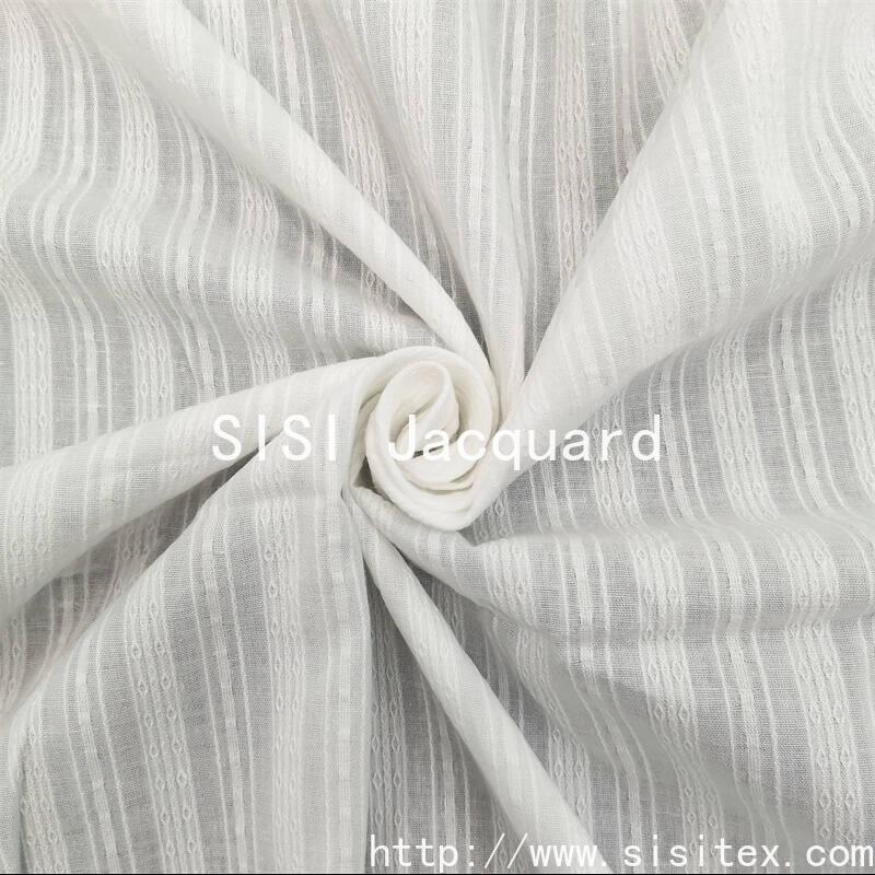 This spring and summer all-cotton gauze jacquard fabric is meticulously presented by Shaoxing Sisi Textile Products Co., LTD. (Sisi Jacquard). It is made from 100% high-quality combed cotton and woven by combining traditional gauze techniques with modern jacquard technology. The fabric features a unique perforated texture and three-dimensional jacquard pattern, with a light and fluffy texture. It has excellent breathability and moisture absorption and sweat-wicking properties, perfectly meeting the demand for freshness and comfort in spring and summer.