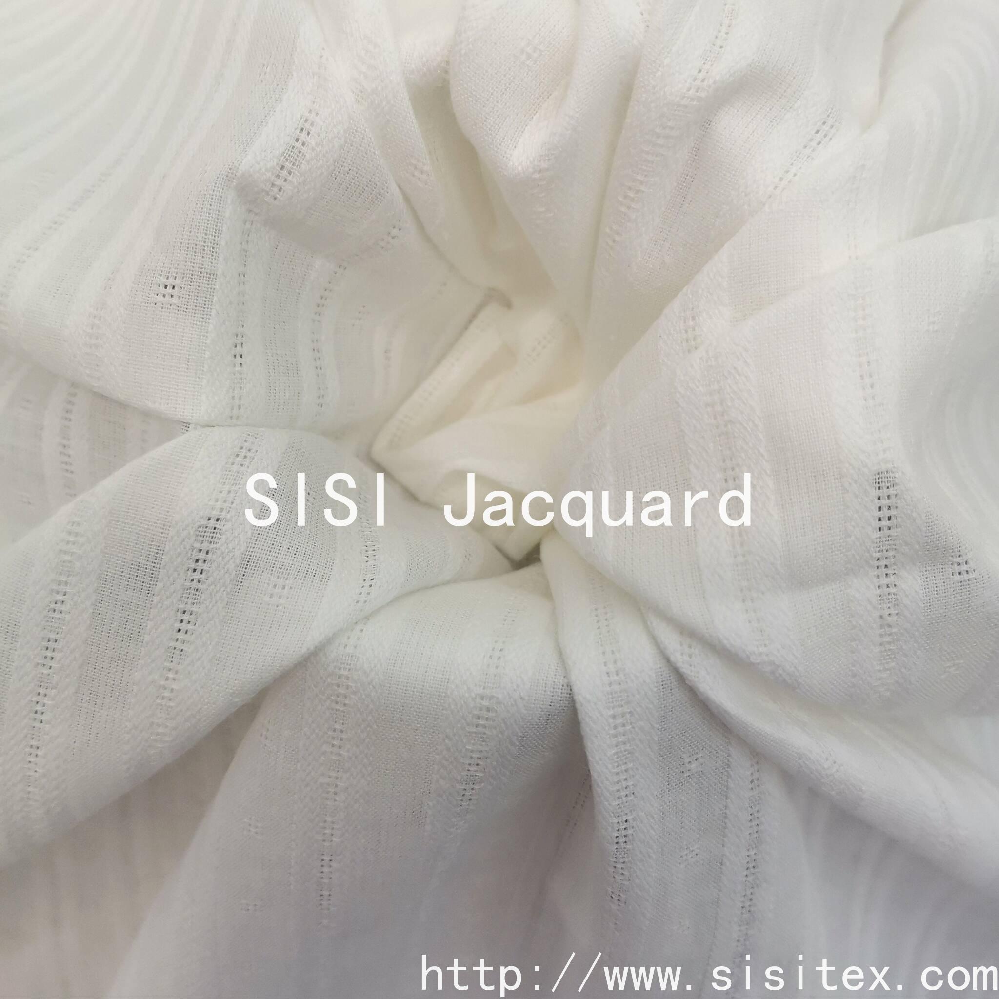 This product is made of 100% cotton jacquard fabric SS18192. The jacquard technique creates unique textures through the interweaving of warp and weft yarns, meeting the "texture and feel" trend while also echoing the "natural and eco-friendly" direction with 100% cotton material. The jacquard structure inherently has a breathable property, meeting the core demand of "light and breathable" in spring and summer, and has become a popular choice for women's and children's clothing and other categories. The transparency of the jacquard and the retro texture of the jacquard complement each other, creating retro-style clothing; the delicacy of the jacquard and the high-grade texture of the cotton blend harmonize, suitable for high-end customization or luxury collections.