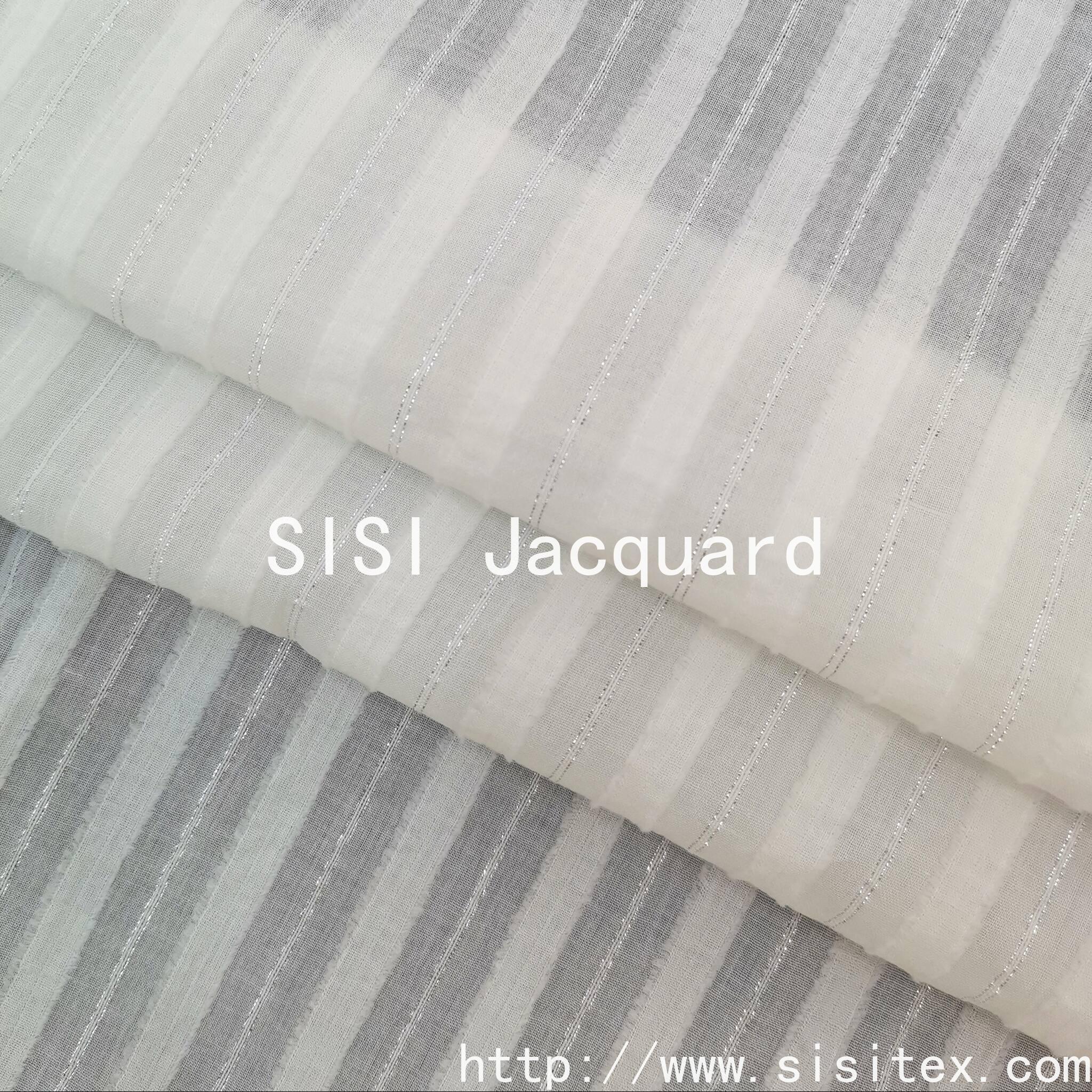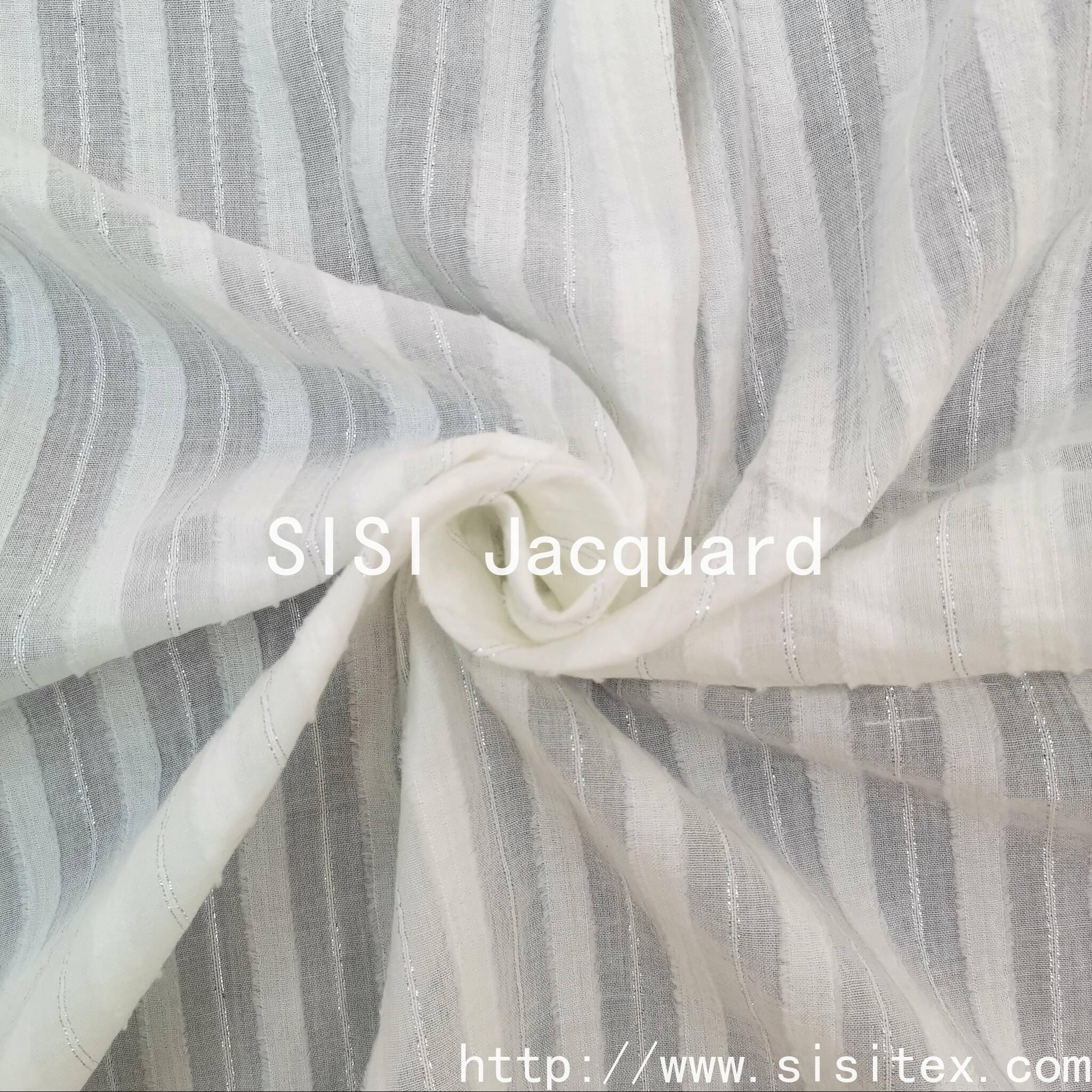 This product is made of 100% cotton with silver thread trim and jacquard pattern. The silver thread trimming technique enhances the elegance of the fabric. The jacquard design accentuates the artistic details, making the fabric have both "natural texture" and "refined embellishments". The combination of the silver thread's luster and the retro feel of the jacquard creates a style suitable for traditional clothing such as cheongsam and hanfu, reinforcing the "Oriental aesthetic" tone. The cotton's skin-friendly and breathable properties make the fabric suitable for daily commuting, outdoor leisure, and other scenarios, conveying a relaxed and carefree atmosphere.