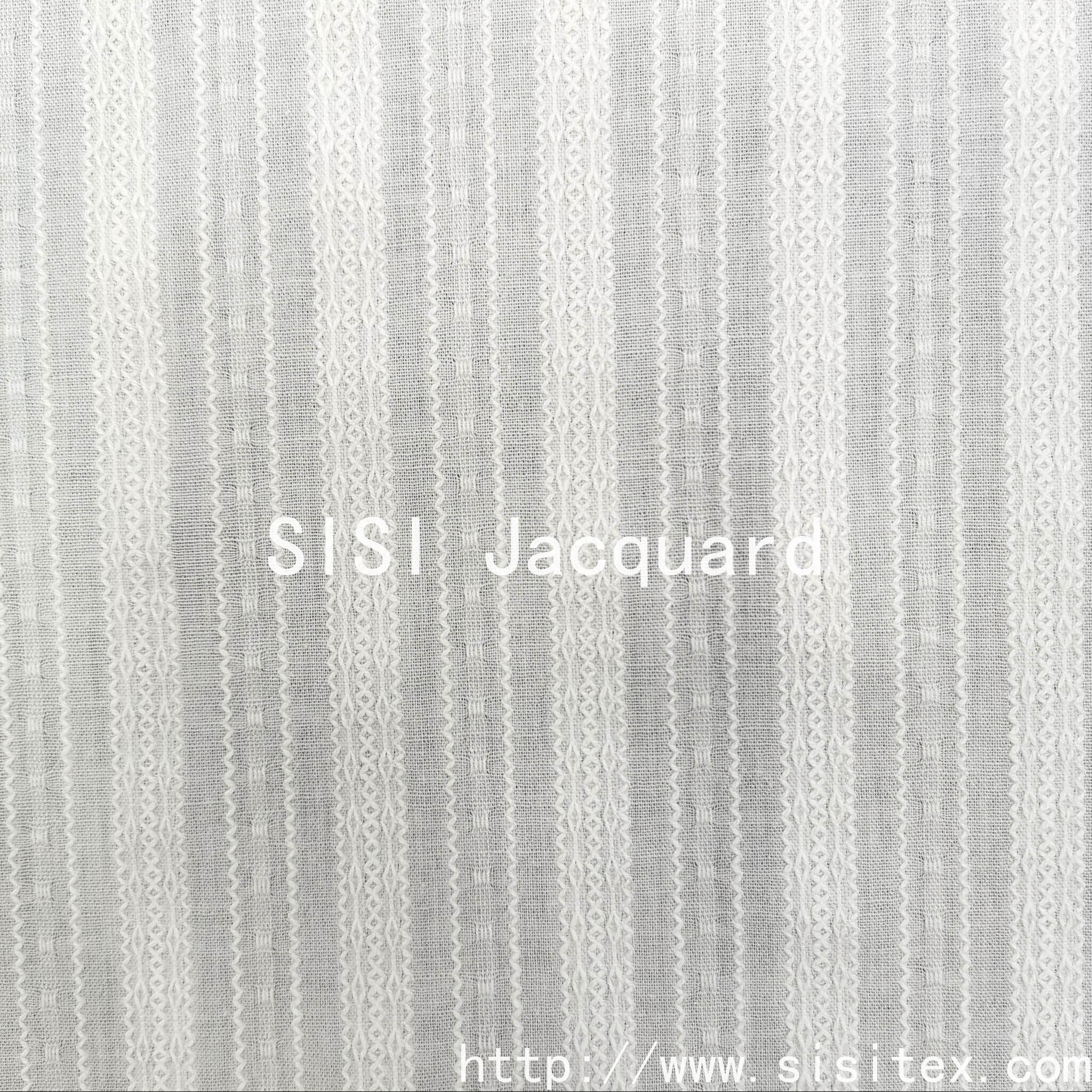 This spring and summer all-cotton gauze jacquard fabric is meticulously presented by Shaoxing Sisi Textile Products Co., LTD. (Sisi Jacquard). It is made from 100% high-quality combed cotton and woven by combining traditional gauze techniques with modern jacquard technology. The fabric features a unique perforated texture and three-dimensional jacquard pattern, with a light and fluffy texture. It has excellent breathability and moisture absorption and sweat-wicking properties, perfectly meeting the demand for freshness and comfort in spring and summer.