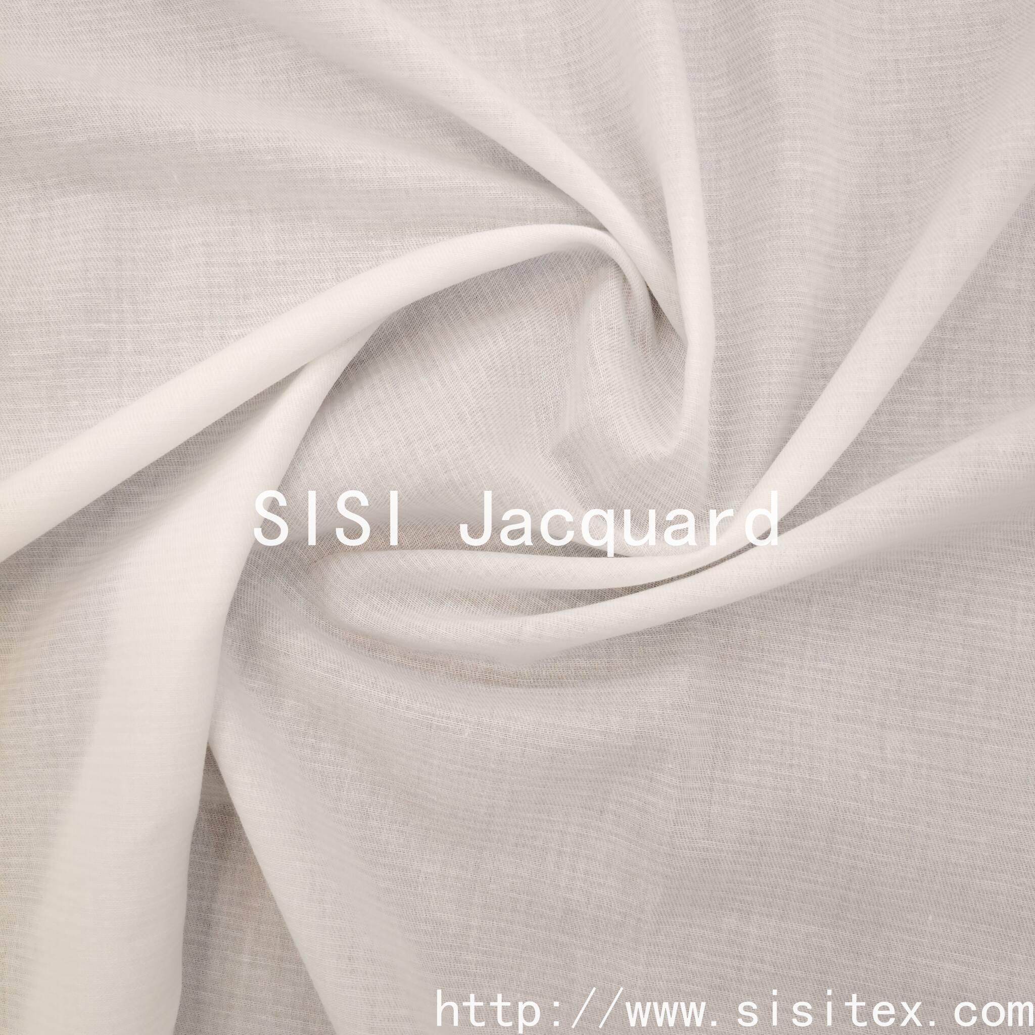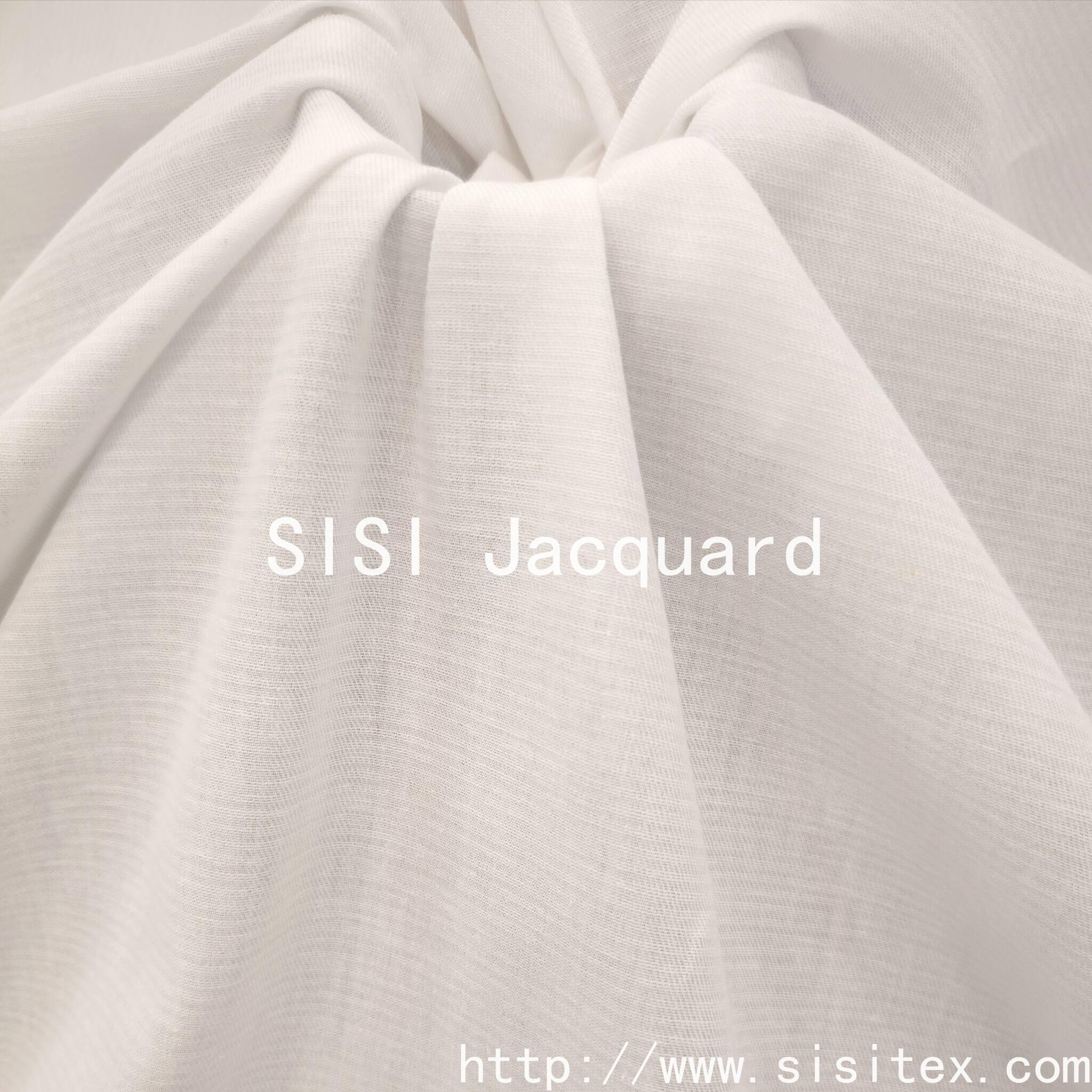 This woven cotton-linen horizontal jacquard fabric is meticulously crafted by Shaoxing Sisi Textile Products Co., LTD. It is made of high-quality cotton-linen blended materials and combines traditional jacquard techniques with modern design, presenting a unique horizontal texture. The fabric is soft and comfortable in texture, with excellent breathability. It combines the skin-friendliness of cotton with the natural texture of linen, making it an ideal choice for creating high-quality household items and fashionable items.
