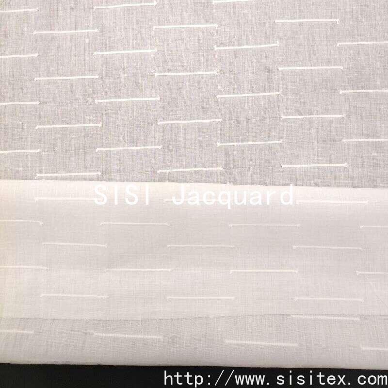 This product is a woven cotton-polyester plain horizontal jacquard fabric SS18242. It employs a more challenging die-cut jacquard weaving technique. Not only does it create patterns, but also through precise trimming, the raised stripes become full and upright, resulting in a distinct raised and depressed tactile sensation. It is scientifically blended with 80% cotton and 20% polyester. The cotton's softness and skin-friendliness allow for dryness and breathability; the durability of the polyester gives the fabric excellent wrinkle resistance and durability. It is easy to care for, stays as good as new after long wear, and perfectly suits the fast-paced urban lifestyle. The simple horizontal strip design is neat and crisp, full of modern industrial aesthetics. The unique three-dimensional presentation breaks the traditional visual of horizontal stripes, not only not making it look bulky, but also able to shape the figure and highlight a professional demeanor. Whether it's a workwear style, functional style or minimalist style, it is an excellent material choice.