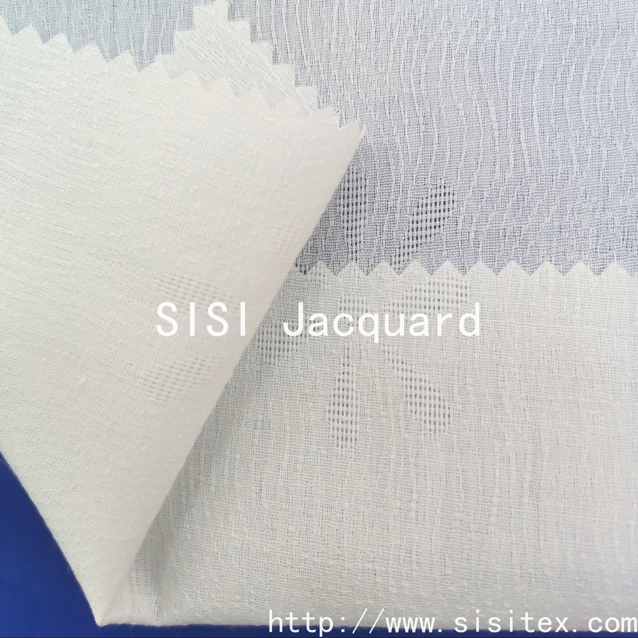 This product features a woven polyester-cotton ripple-shaped water-drop flower jacquard fabric, with a practical ratio of 65% polyester and 35% cotton. The high content of polyester ensures that the fabric has excellent wrinkle resistance and durability. Even after being vigorously manipulated, the garment can quickly return to its original shape, making it suitable for daily wear and travel. The addition of cotton provides the necessary skin-friendly comfort, achieving a perfect balance between functionality and comfort. The precise jacquard weaving technique brings the patterns to life on the fabric, creating clear raised and recessed textures. This not only enriches the visual layers but also offers a pleasant touch, highlighting the outstanding manufacturing process. The ripple and water-drop imagery has an Eastern aesthetic charm and a natural healing atmosphere, resonating with the popular "New Chinese Style" and the "Healing Style" that focuses on inner peace.
