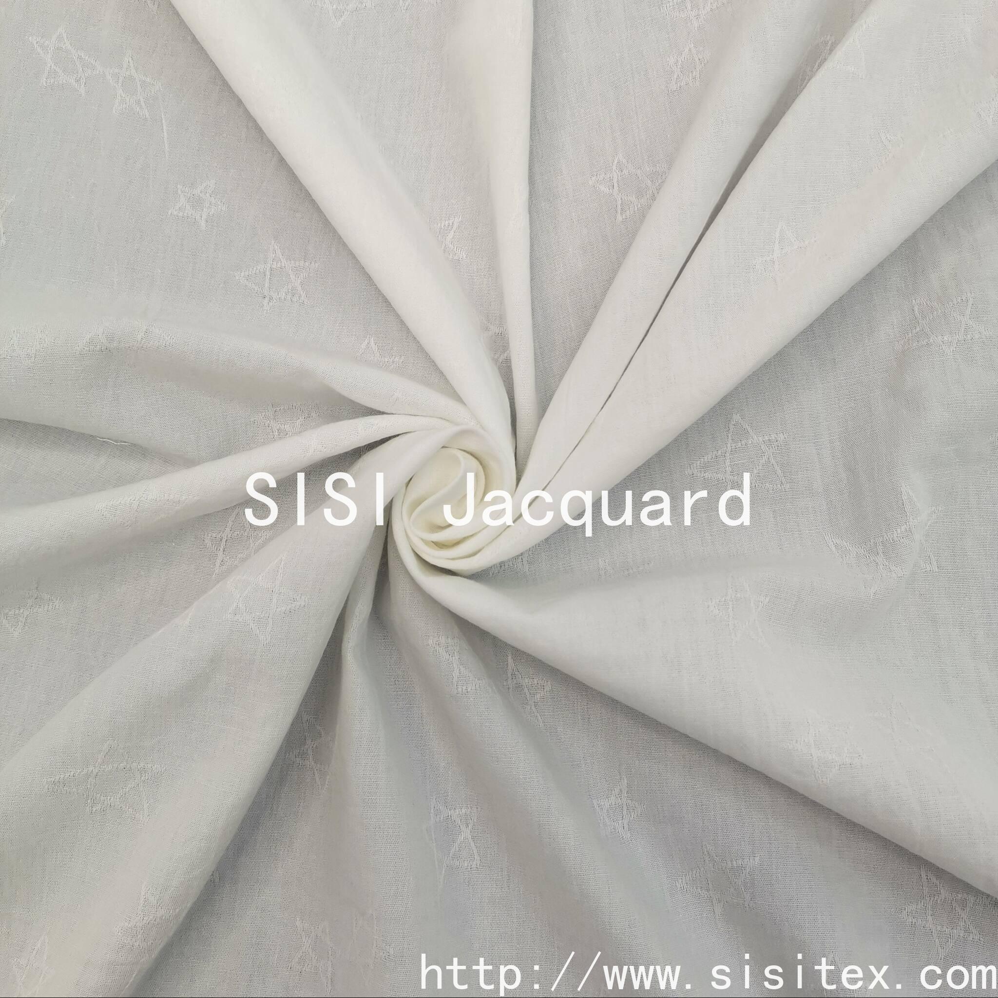 This product is the woven cotton-spandex five-pointed star jacquard fabric SS20010, with a classic ratio of 80% cotton and 20% rayon. It has continuously dominated the market by maintaining the breathability and skin-friendliness of cotton while incorporating the smoothness and drape of rayon. It is the gold standard for creating comfortable daily wear. It is a successful neutral design element that perfectly meets the demands of the gender-neutral style and the children's clothing market. The small and dense star-shaped jacquard creates uniform raised and recessed textures on the fabric surface. This three-dimensional effect achieved through weaving has a higher quality and tactile appeal compared to flat prints, catering to consumers' ultimate pursuit of "the beauty of details".