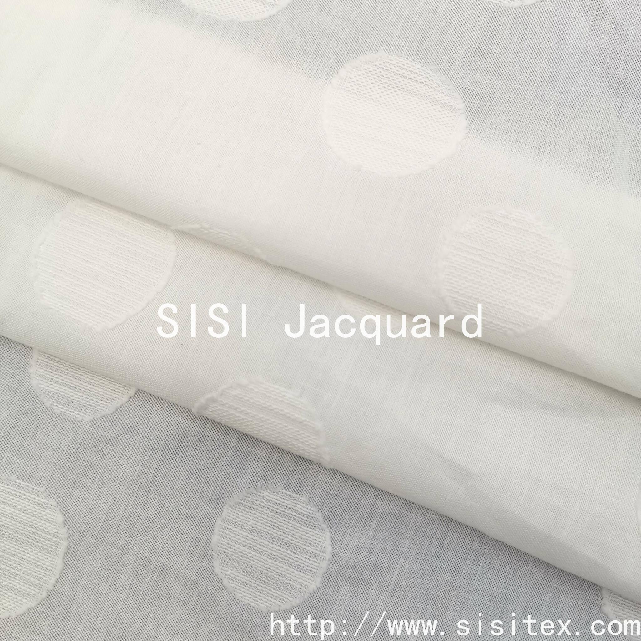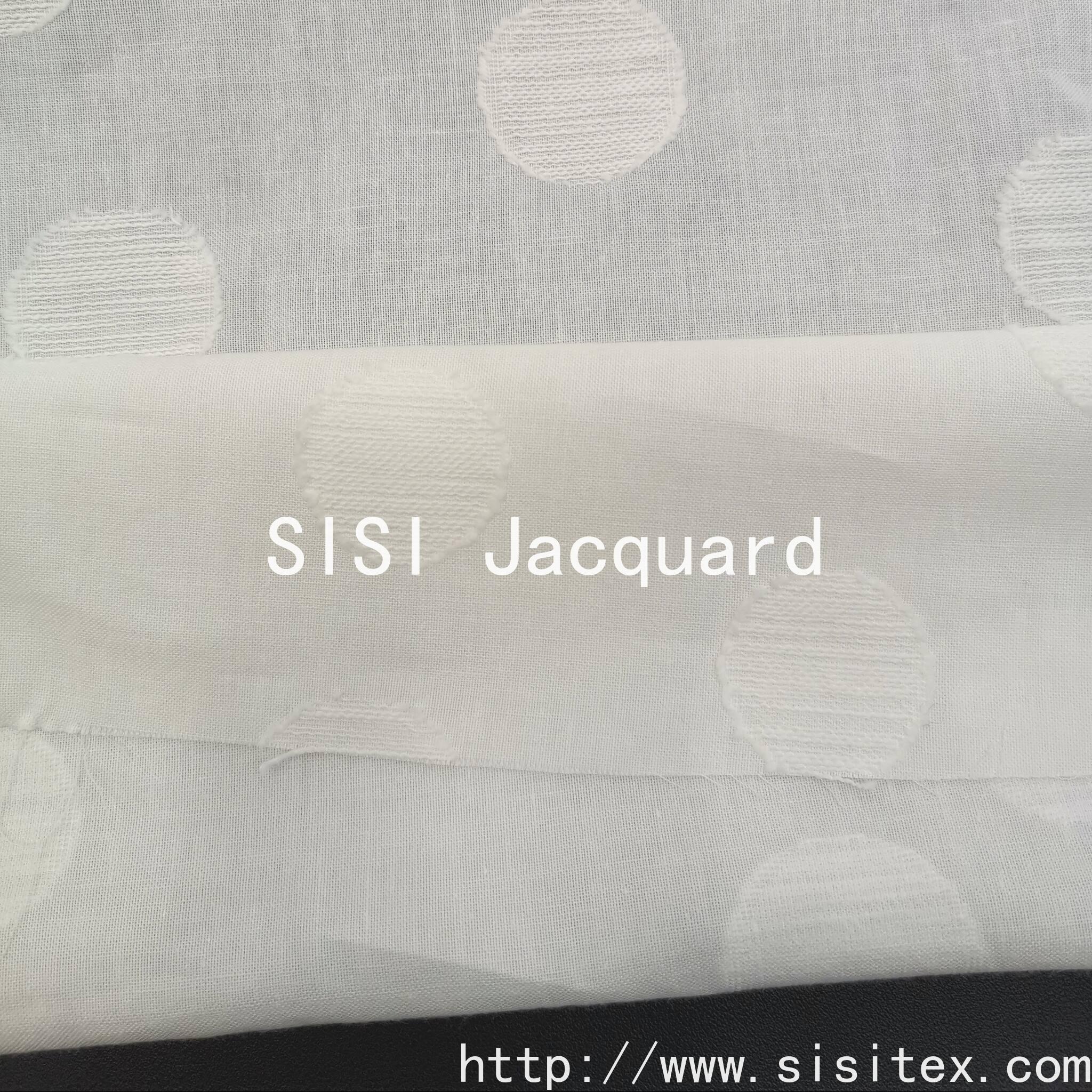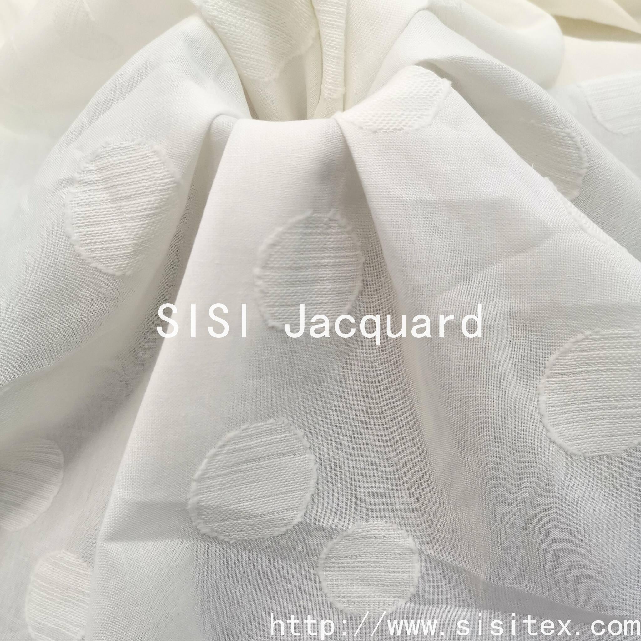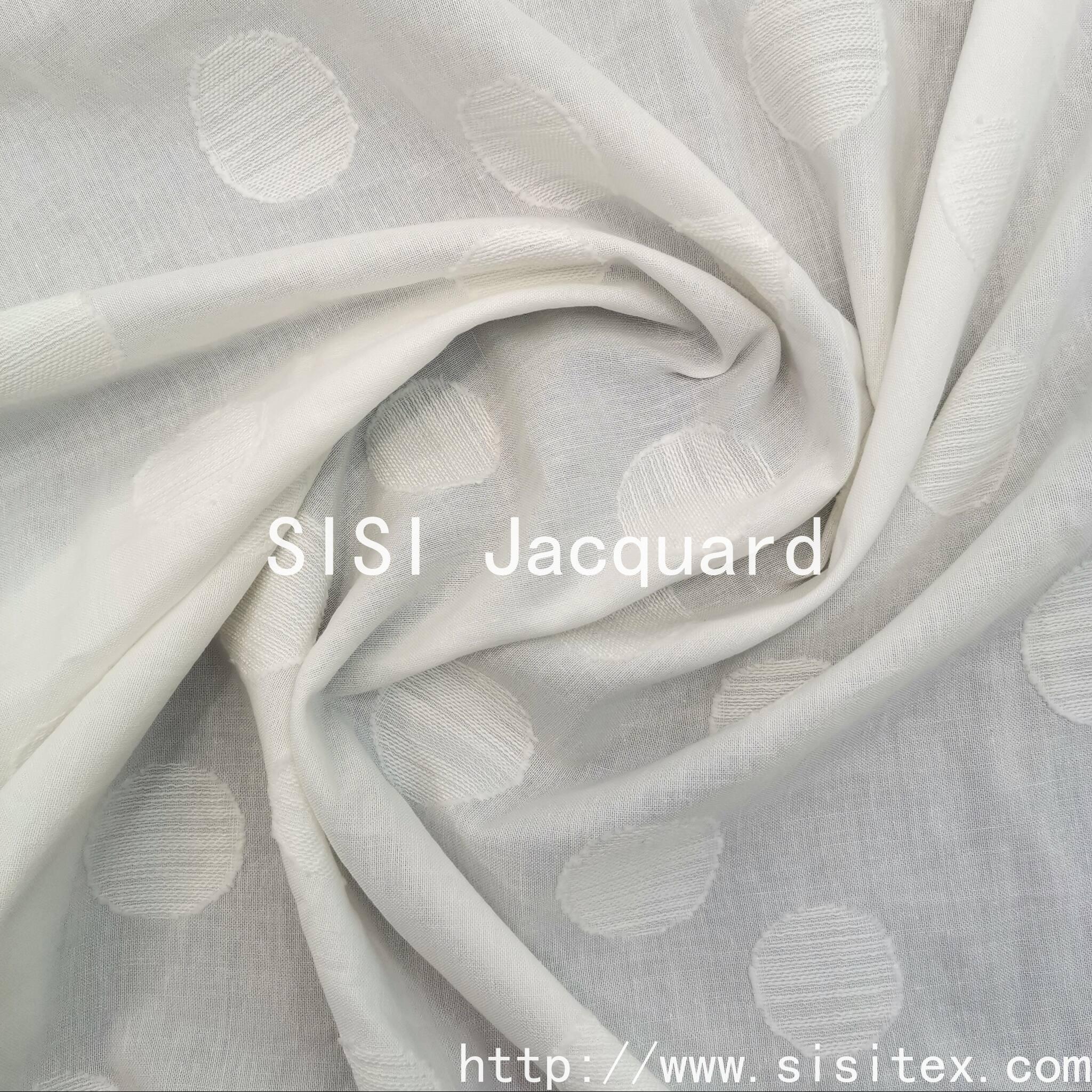 This product features the all-round circle jacquard printed fabric SS20028. It is made of 100% cotton. Firstly, a soft circular pattern is woven using the jacquard technique, and then, by the hands of skilled artisans, the precise cutting of the fabric is carried out to create each circle on the fabric, resulting in a charming relief texture. The cutting technique precisely cuts the local yarns on the basis of the jacquard pattern, creating a relief-like effect similar to a relief sculpture, perfectly echoing the revival of the "new artisan spirit". The circle, this classic geometric element, with its soft and smooth shape, finds a balance between retro and futuristic elements.