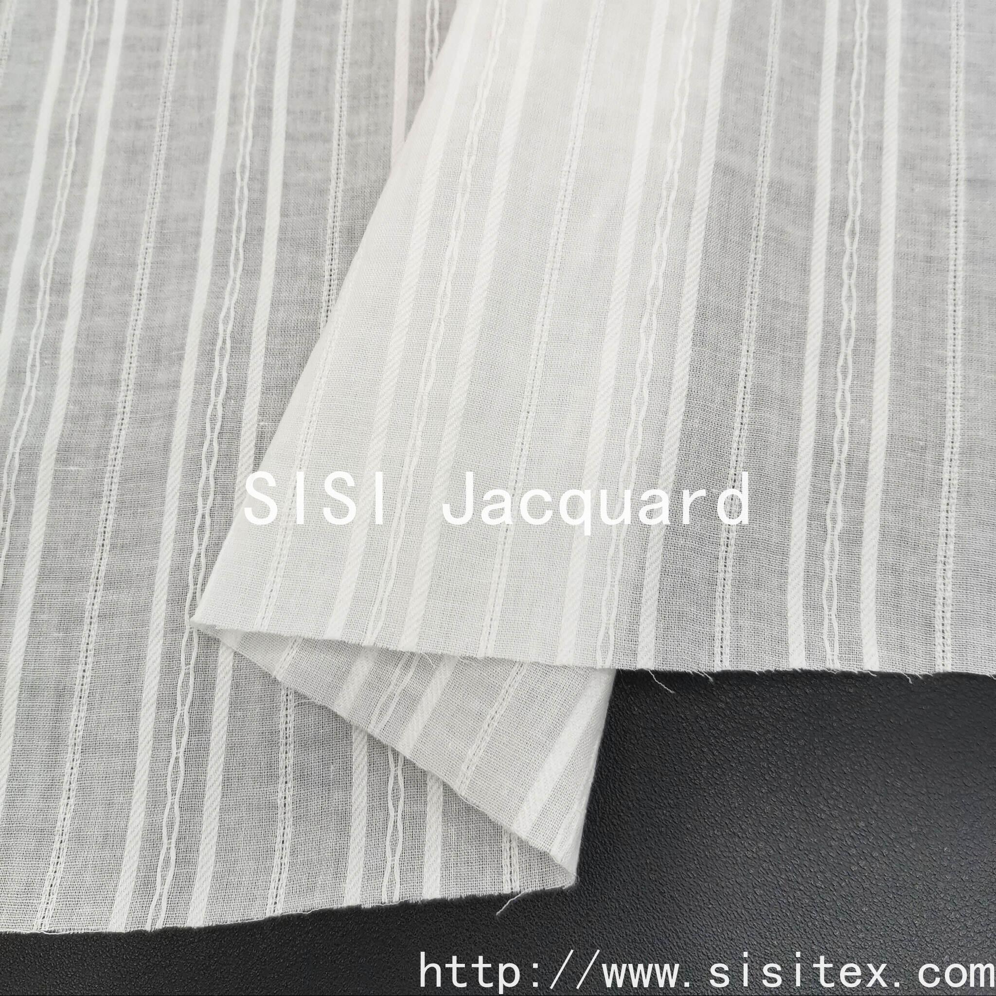 "Silk Jacquard" all-cotton striped gauze fabric is woven from high-quality cotton yarn. The classic vertical stripes blend with the perforated gauze structure, making it light, breathable and having a distinct texture. The fabric has a smooth touch and excellent drape. When made into clothing, it is flowing and refreshing. When used in home decoration, it creates a transparent light and shadow effect. Whether cut into a summer dress or used as a curtain to embellish the space, this fabric can infuse a touch of simple yet not simplistic aesthetic style into life with its natural texture and detailed design.