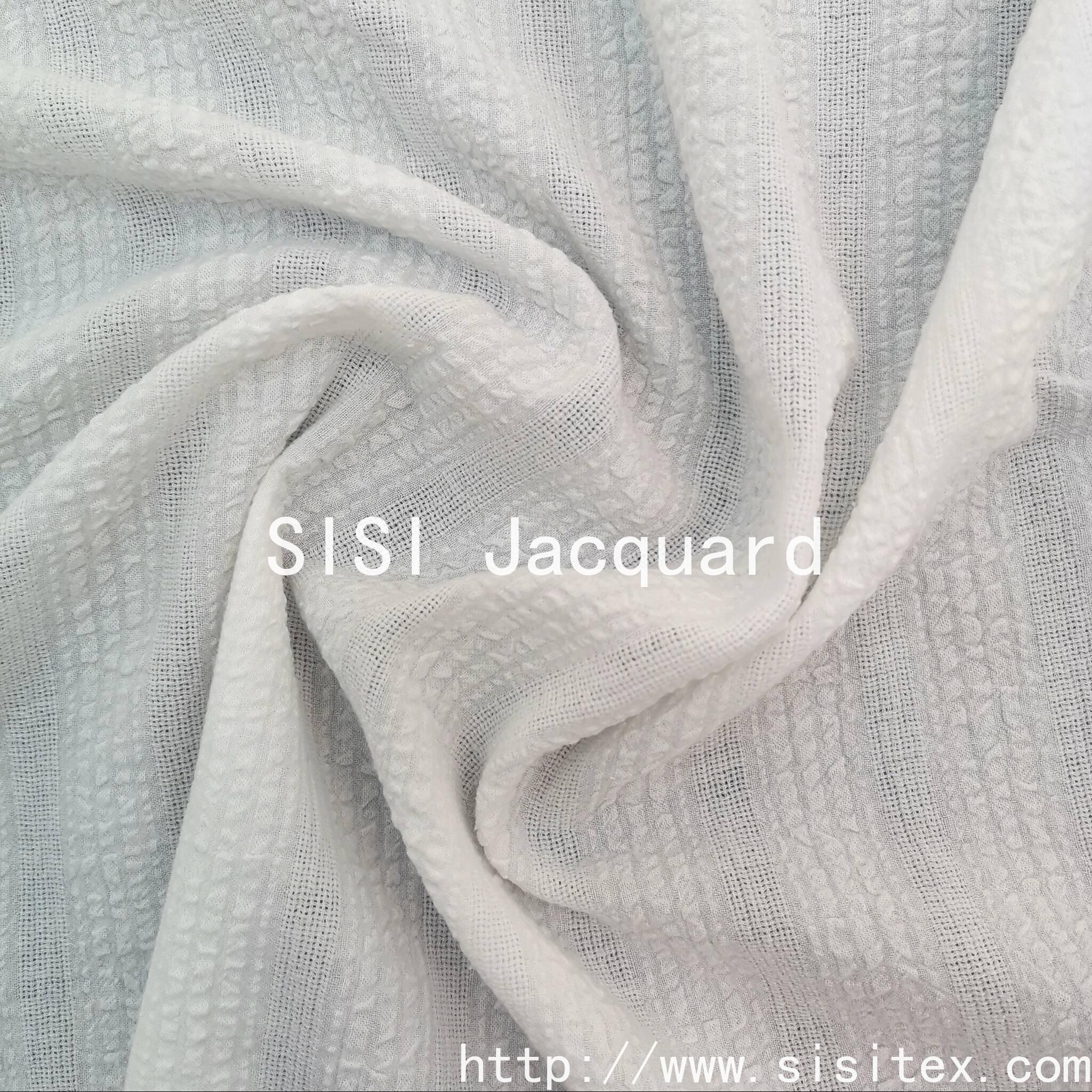 This product is made of 100% pure cotton, with the SS18274 model featuring a full-cotton, open-work vertical stripe jacquard fabric. Through precise open-work jacquard weaving techniques, it creates a vertical stripe texture that combines structural beauty with transparency. The fabric has a smooth and crisp feel, and the open-work stripes are neat and rhythmic. Whether it is used to make a misty blouse for summer or a light-shadow screen to define the spatial atmosphere, it can inject a light and effortless modern touch into design and life with its unique transparency and rational aesthetics.