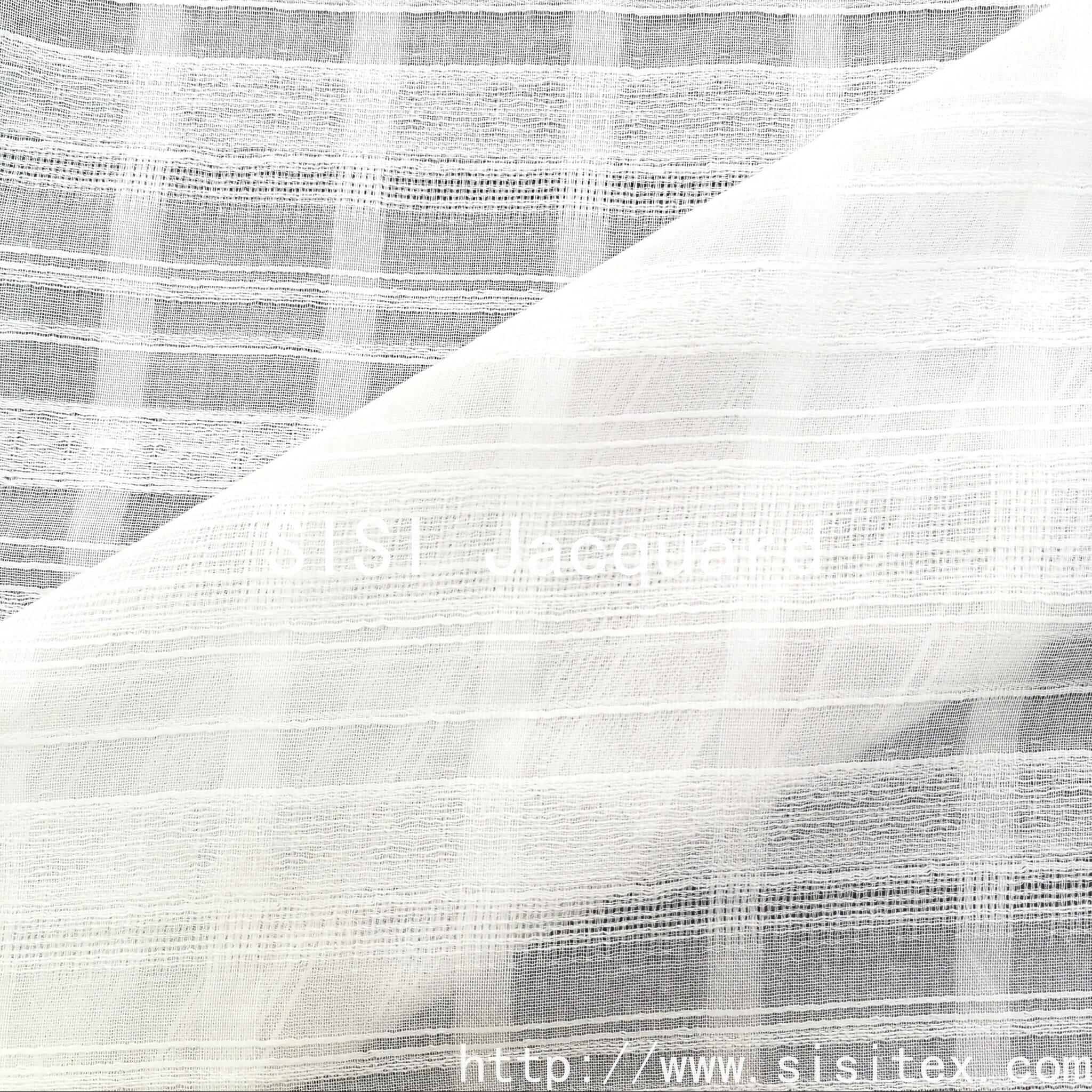This product is a unique and ingenious cotton twill mesh jacquard fabric. It is made from 100% cotton and is woven through a meticulous jacquard process, creating soft horizontal textures running throughout the fabric and exquisite regular mesh patterns. The fabric not only retains the natural attributes of pure cotton, being soft and skin-friendly, but also gains an ultimate breathable wearing experience due to its unique mesh structure. It feels like breathing skin. The interweaving of the twill texture and the mesh holes creates rich light and shadow layers. As the body moves or the angle of the light changes, it presents a dynamic visual art. Whether used to make a light and flowing summer blouse, a romantic vacation dress, or as a transparent window curtain at home, this fabric can bring a refreshing and elegant aesthetic enjoyment with its unique transparency, artistic texture and cotton comfort.
