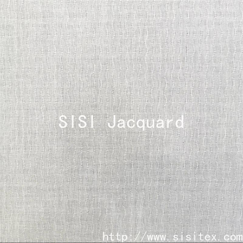 "Silk Jacquard" pure cotton wavy vertical jacquard fabric is woven with high-quality cotton yarn and exquisite jacquard techniques. The texture is clear and three-dimensional, and the touch is soft and comfortable. The flowing wavy pattern is ingeniously combined with vertical stripes, which not only creates a visually extended slimming effect but also endows the fabric with a soft and rhythmic feel. Whether cut into a flowing dress or used as a home curtain, this fabric can add a unique charm of the blend of nature and art to your choice. Made of natural pure cotton, it is environmentally friendly and skin-friendly, suitable for you who pursue both quality and comfort.