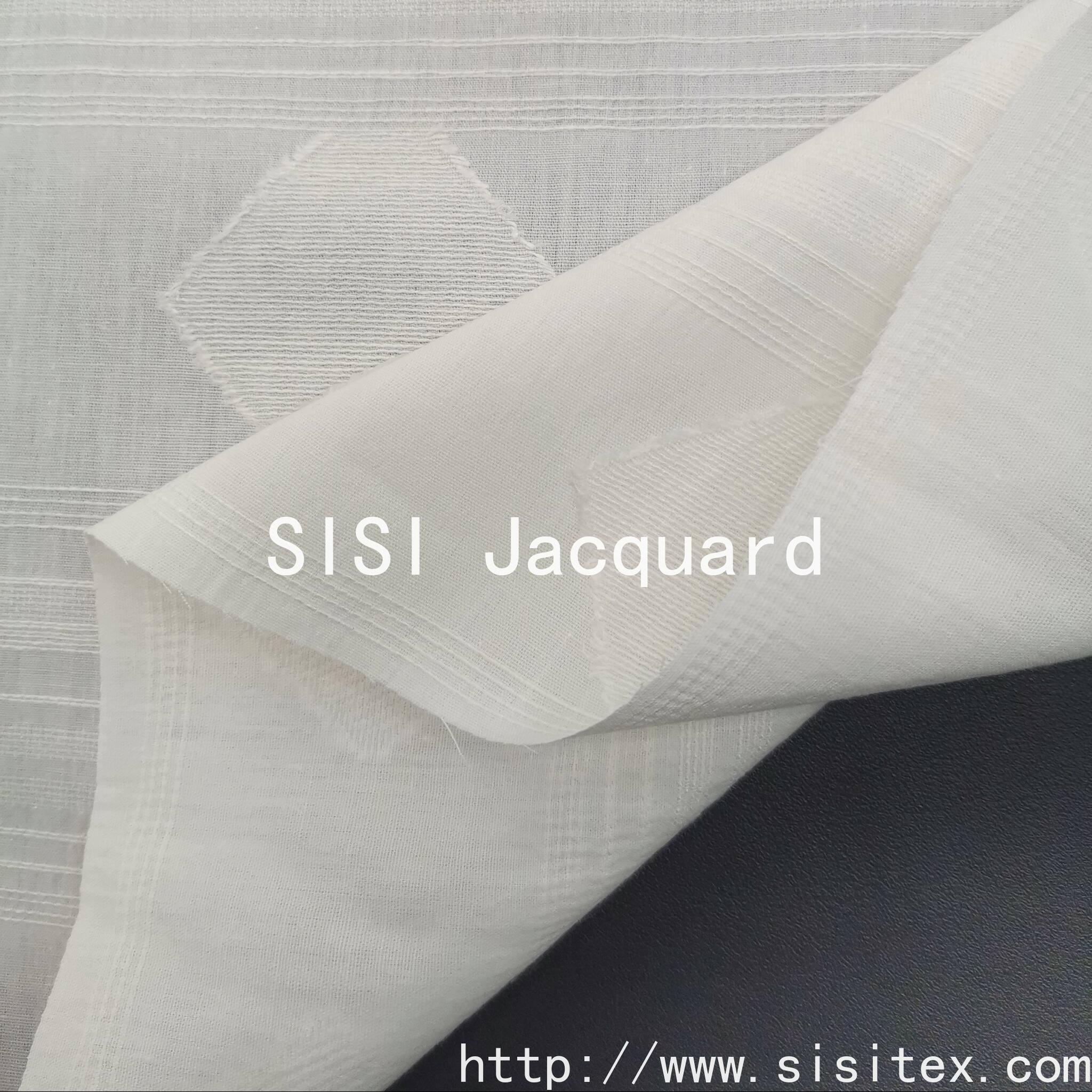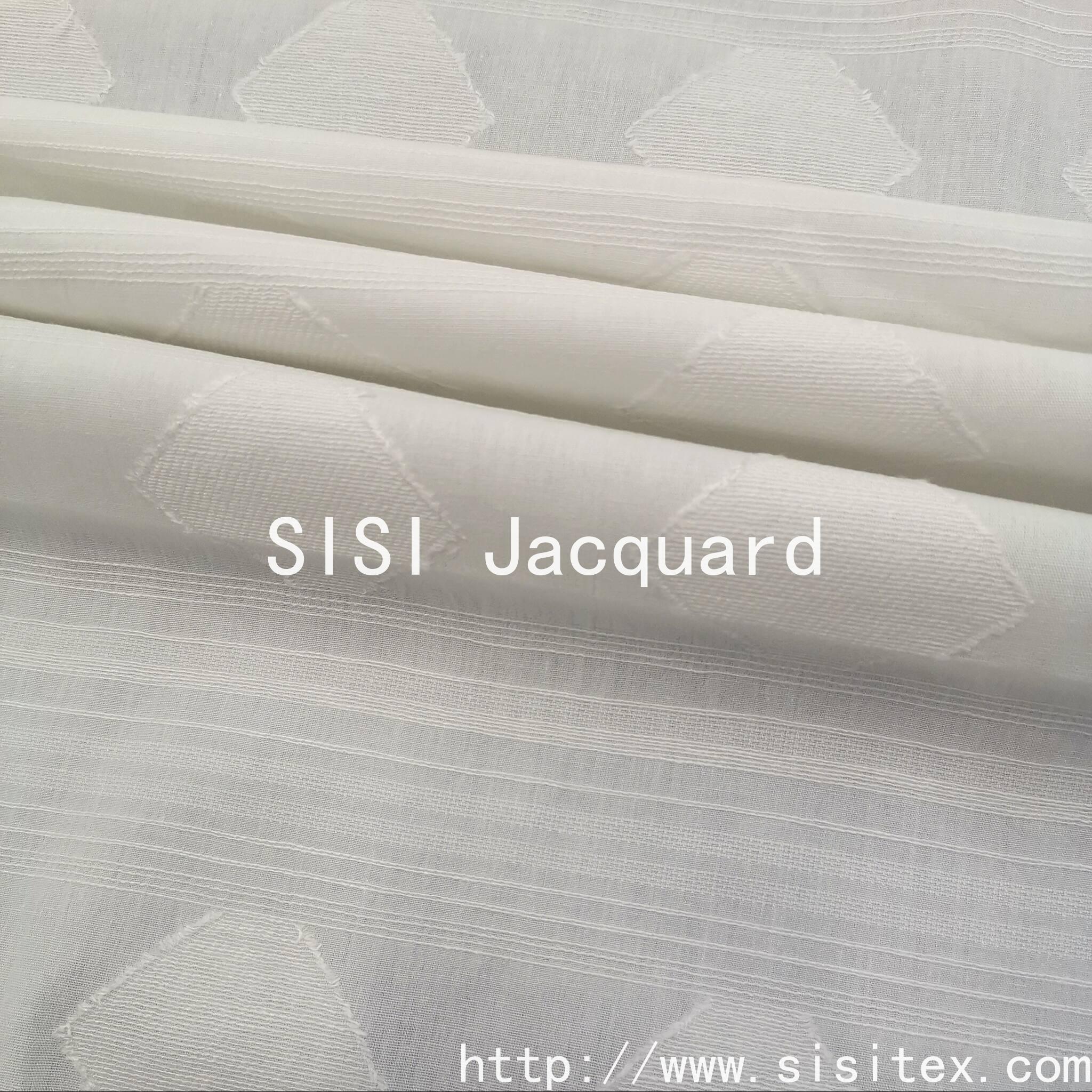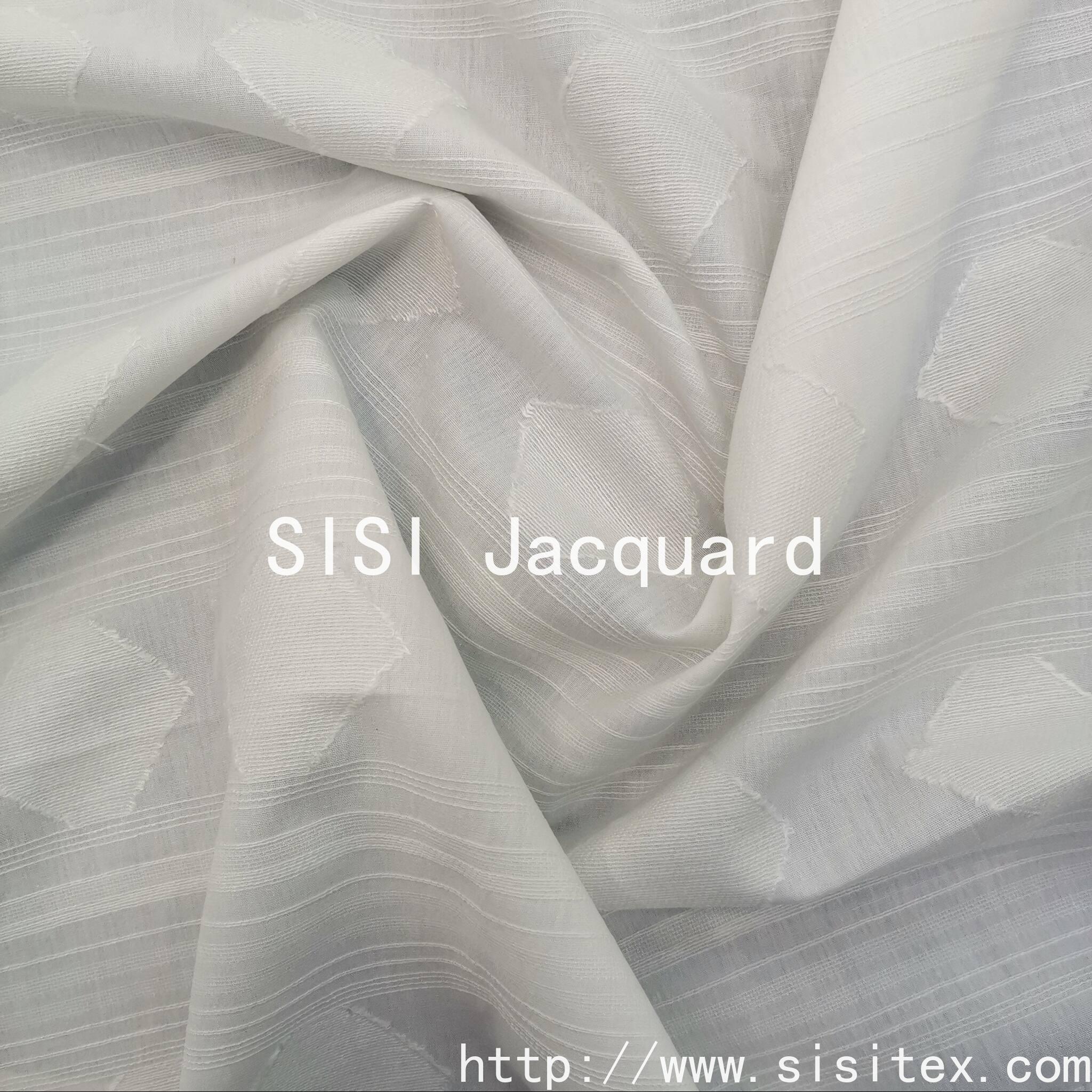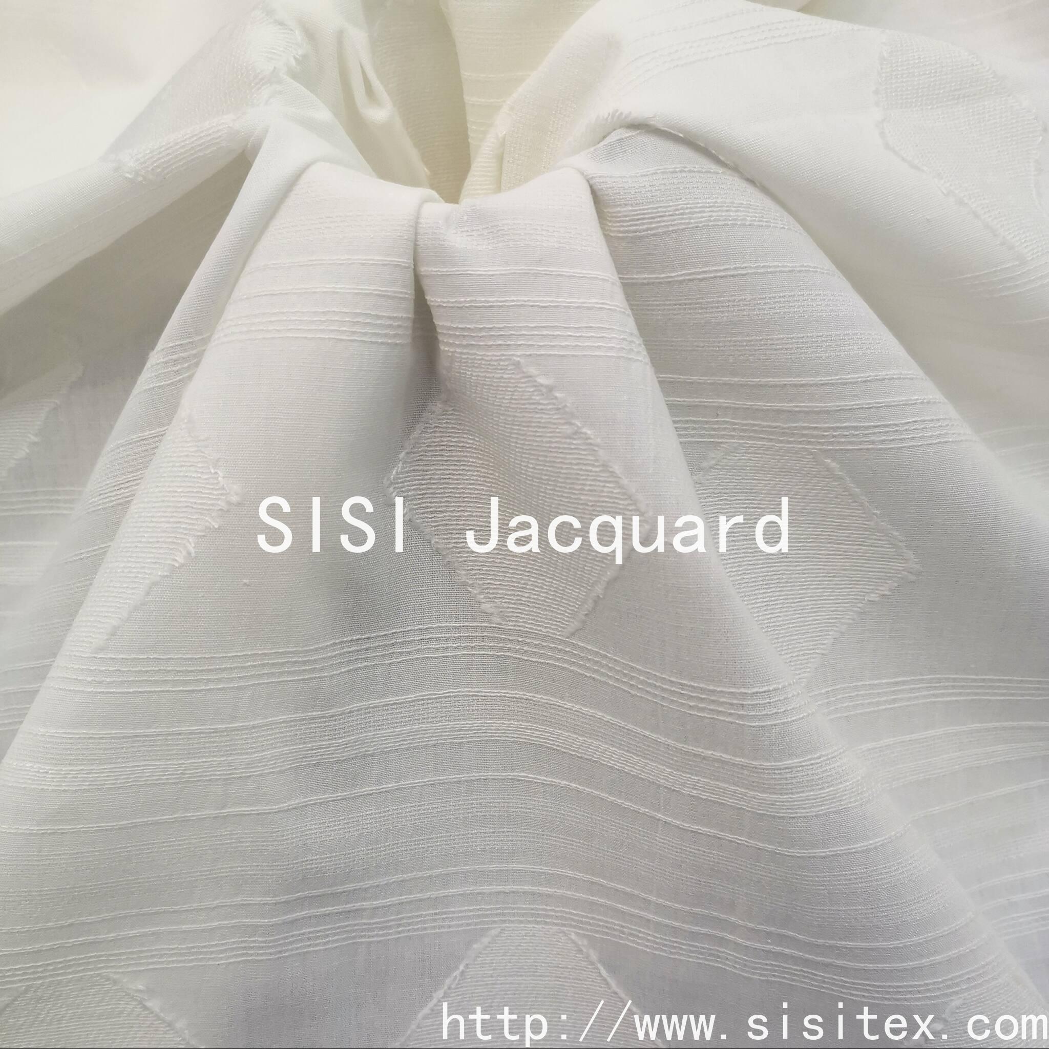 This product is a woven cotton rayon diamond-patterned jacquard fabric SS20043. The oriental charm of the shape and the exquisite craftsmanship bring a perfect match to the elegance of "New Chinese Style" and the extreme pursuit of materials and craftsmanship in "Quiet Luxury Style". The strong three-dimensional effect is like a miniature architecture, suitable for designs with structural sense. The fabric has a strong skeletal quality, and the resulting shirts are upright and stylish. The strong texture makes it a low-key work of art. It is scientifically composed of 85% cotton and 15% rayon. It retains the skin-friendly and breathable properties of high-cotton content while infusing just the right amount of smoothness and drape through the polyester, achieving the stiffness and flexibility required for high-end ready-to-wear clothing.