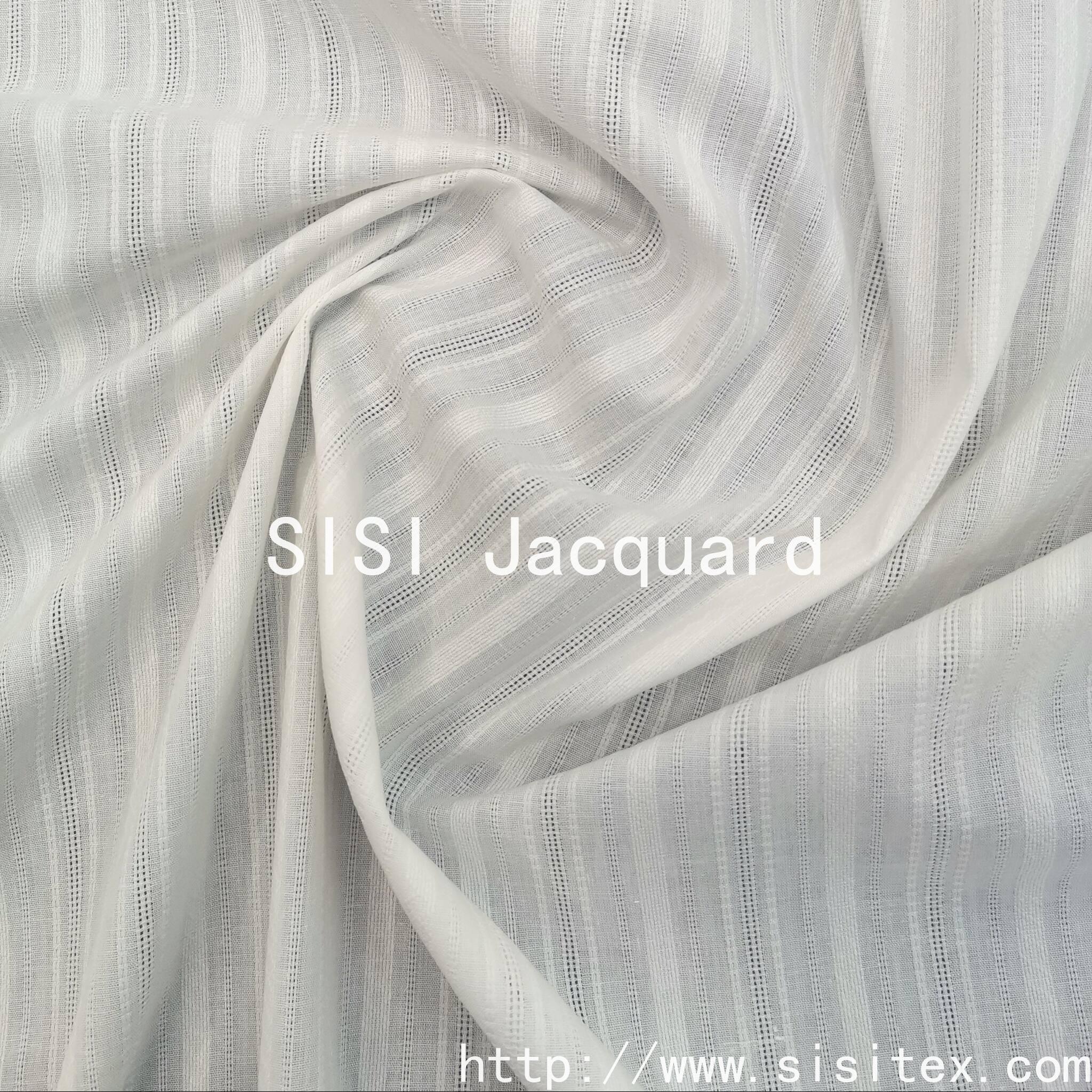 This 100% cotton vertical-striped jacquard fabric SS18290 is meticulously woven using traditional jacquard techniques and modern weaving technology. The fabric features a unique perforated structure that creates natural breathing holes within the orderly vertical stripes, maintaining the orderly aesthetic of the stripes while also providing exceptional breathability. The 100% cotton material ensures a soft and comfortable skin contact, and also has excellent moisture absorption and breathability. When light passes through the jacquard holes, it forms rich layers of light and shadow. This fabric can bring a pleasant surprise to those seeking a quality lifestyle with its unique structural aesthetics and natural comfort experience.
