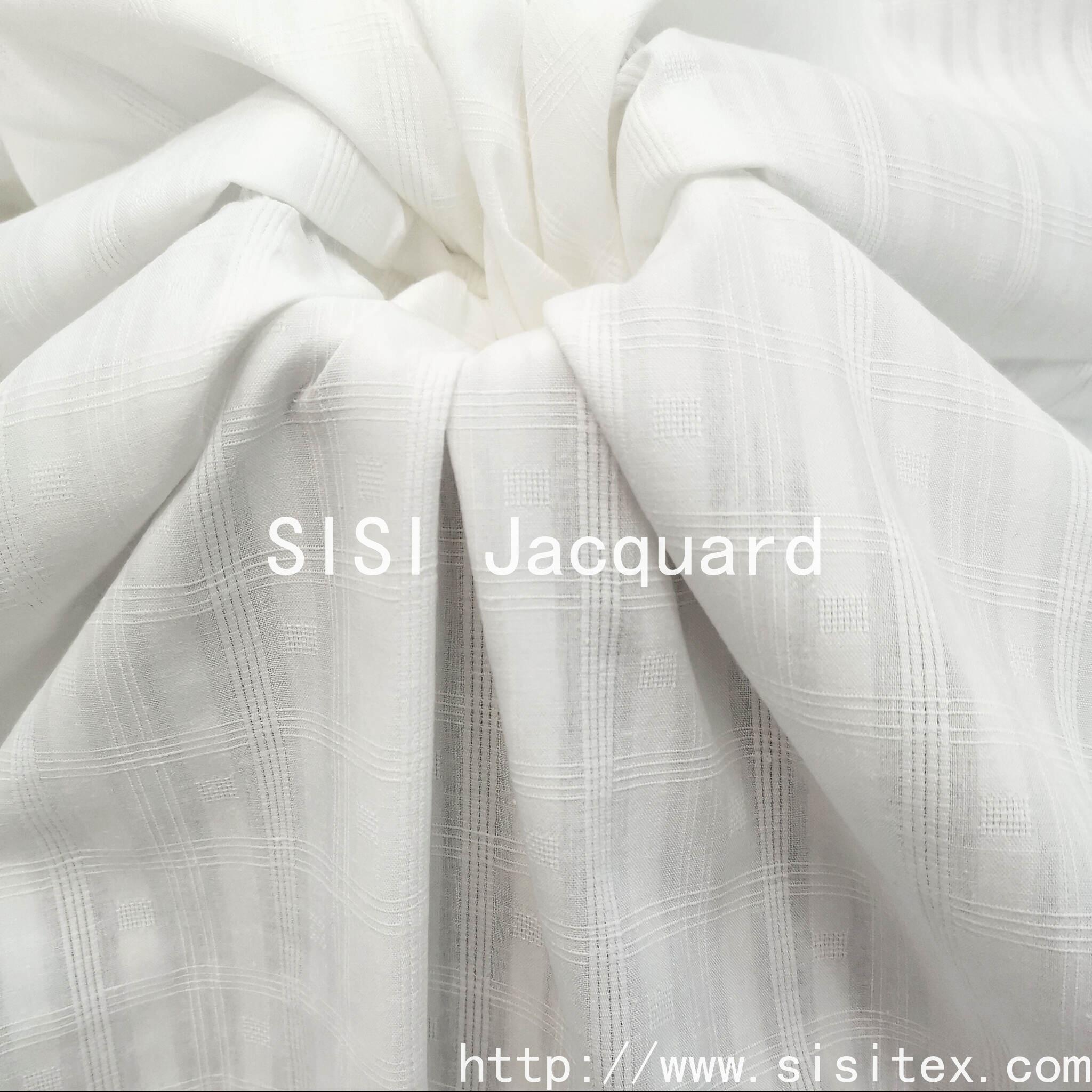 The SS18056-1 all-cotton checkered jacquard fabric is woven from high-quality cotton yarn and has a soft and fine touch. The exquisite jacquard technique endows the checkered pattern with a three-dimensional layering effect. From a distance, it looks simple, but up close, it is full of details. The fabric is smooth and not prone to wrinkling, making it suitable for all kinds of clothing and home decorations, combining comfort and design sense. Whether it's cutting out an artistic shirt or DIY a unique throw pillow, it can add a touch of natural elegance to your daily life.