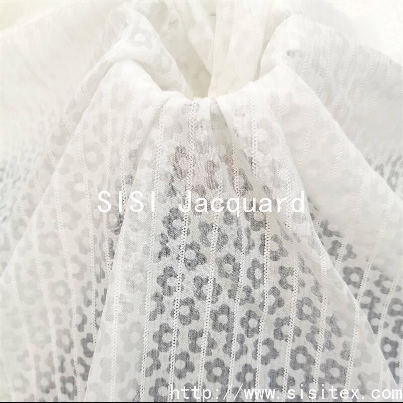 This CVC small flower, rotten flower and burned flower fabric is made of a cotton-polyester blend. Through a special process, it creates a three-dimensional and hollowed-out flower pattern. The flower shape is exquisite and dynamic, and the texture is transparent and rich in layers. The fabric combines the softness and skin-friendliness of cotton with the stiffness and ease of care of polyester, making it highly suitable for creating spring and summer women's clothing, children's wear or home soft furnishings. Whether it's a sweet dress or a country-style home fabric, they can all add a unique romantic touch to your design. Shaoxing Sisi Textile Products Co., Ltd. integrates the beauty of natural flowers into modern textile art with its exquisite craftsmanship.